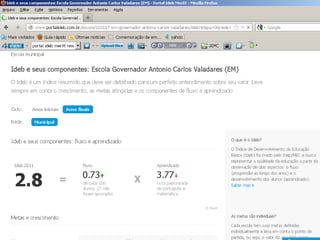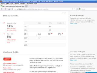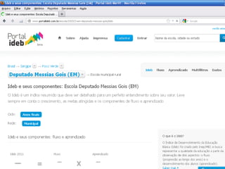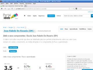 O documento explica três indicadores chave da educação brasileira: o IDEB mede a qualidade da educação básica, o SAEB fornece diagnósticos do sistema educacional, e a Prova Brasil avalia o desempenho escolar em leitura e matemática.