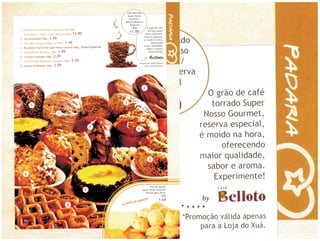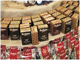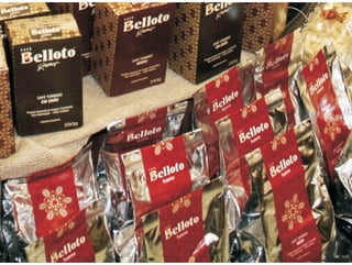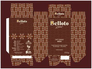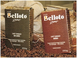 O documento apresenta o planejamento para a criação de embalagens para duas linhas de café da marca Belloto: Gourmet e Superior. A linha Gourmet será destinada a supermercados e deve apresentar diferenciais de qualidade. A linha Superior será vendida em empresas para máquinas de café. O nome da marca remete à tradição italiana na cafeicultura brasileira.