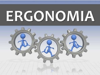 O documento discute a ergonomia, definindo seu objetivo de transformar o trabalho em uma experiência mais satisfatória e segura. Aborda a Norma Regulamentadora NR-17, que identifica os riscos ergonômicos relacionados ao levantamento e transporte de materiais, mobília, condições ambientais e organização do trabalho. Enfatiza a importância da colaboração entre profissionais de diversas áreas na implementação de melhorias para a segurança no trabalho.