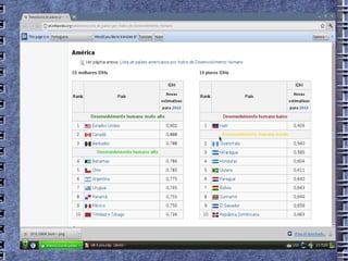 O documento descreve o Índice de Desenvolvimento Humano (IDH), que classifica os países de acordo com seu grau de desenvolvimento humano em três dimensões: expectativa de vida e saúde, educação e renda. Os países são categorizados como de muito alto, alto ou médio desenvolvimento humano com base em seus escores combinados nessas três dimensões.