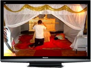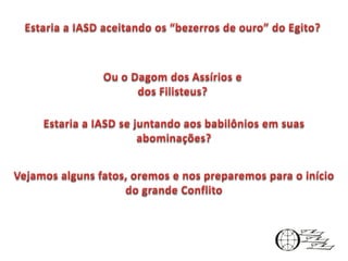 O documento explica a origem da palavra idolatria, que vem do grego "eidolon" (imagem) e "latreia" (culto). Idolatria refere-se ao culto e adoração de imagens em vez do verdadeiro Deus. A Bíblia condena a idolatria como o culto a objetos feitos pelo homem em vez do Deus vivo. Muitos foram desviados da fé cristã pela união entre a cristandade e o paganismo e seu culto a imagens e santos.