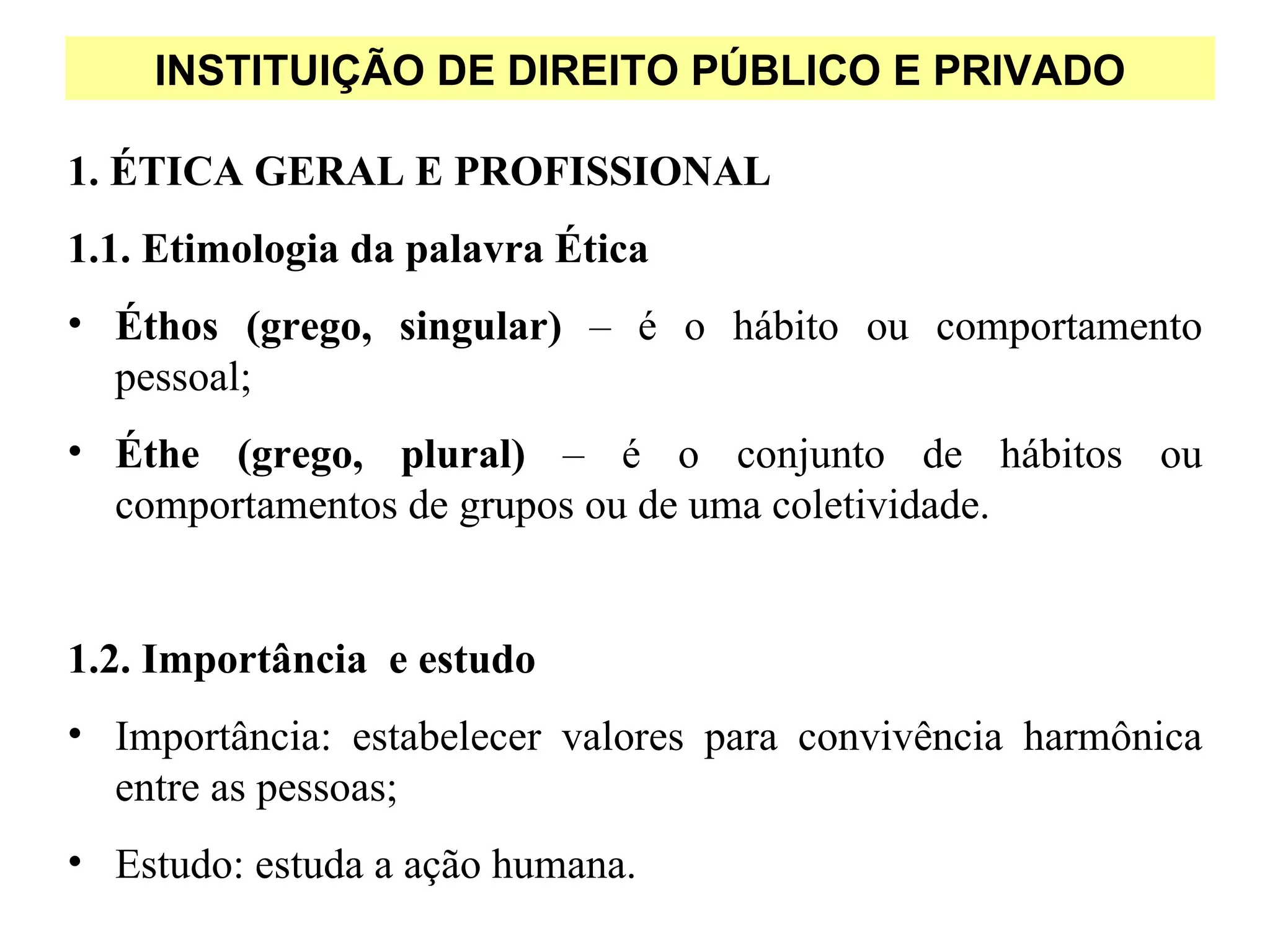 Este documento fornece um resumo da ética, direito público e privado, e direito do trabalho. Em particular, define ética como a ciência do comportamento moral dos homens em sociedade. Também define direito como um conjunto de normas, princípios e leis que disciplina a relação interpessoal. Por fim, define direito do trabalho como o ramo do direito que regula as relações de emprego e outras situações semelhantes.