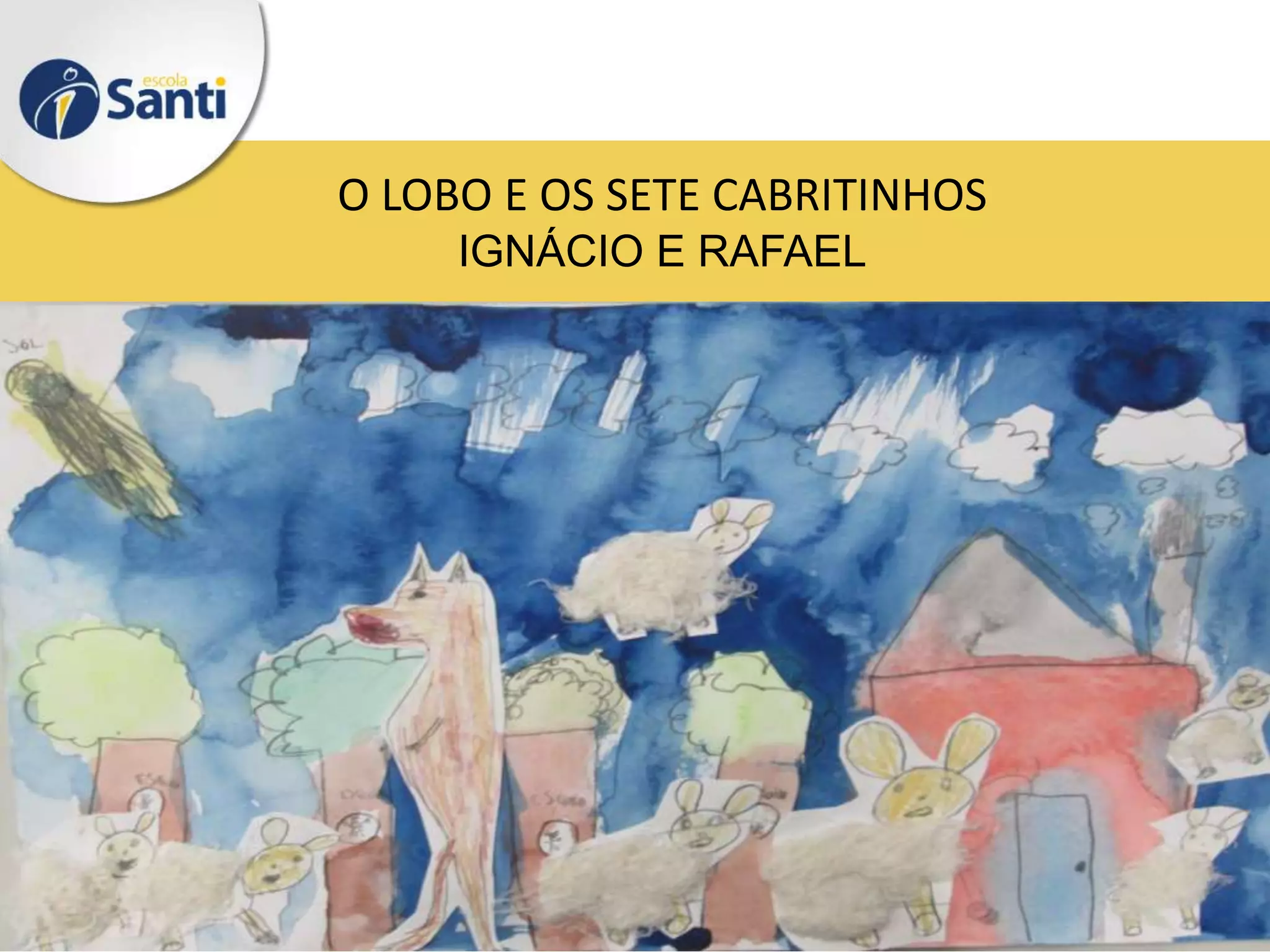 O documento descreve um projeto realizado por alunos do 1o ano onde eles reescreveram o conto "O Lobo e os Sete Cabritinhos" em duplas e trios. As crianças tiveram que cuidar da linguagem, ordem dos eventos e caracterização dos personagens. Elas também trabalharam em revisão ortográfica e pontuação. No final, as histórias ganharam ilustrações feitas pelos próprios alunos.