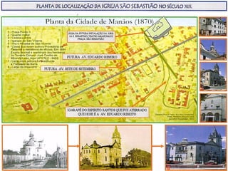A Igreja de São Sebastião em Manaus foi construída em 1888 em estilo neoclássico com elementos medievalistas e possui painéis e vitrais europeus. Suas pinturas no teto e cúpula, trazidas da Itália, retratam a vida de São Sebastião e a Glória do Céu. A fachada da igreja tem apenas um sino, pois o mestre teria fugido com o dinheiro para construir o segundo.