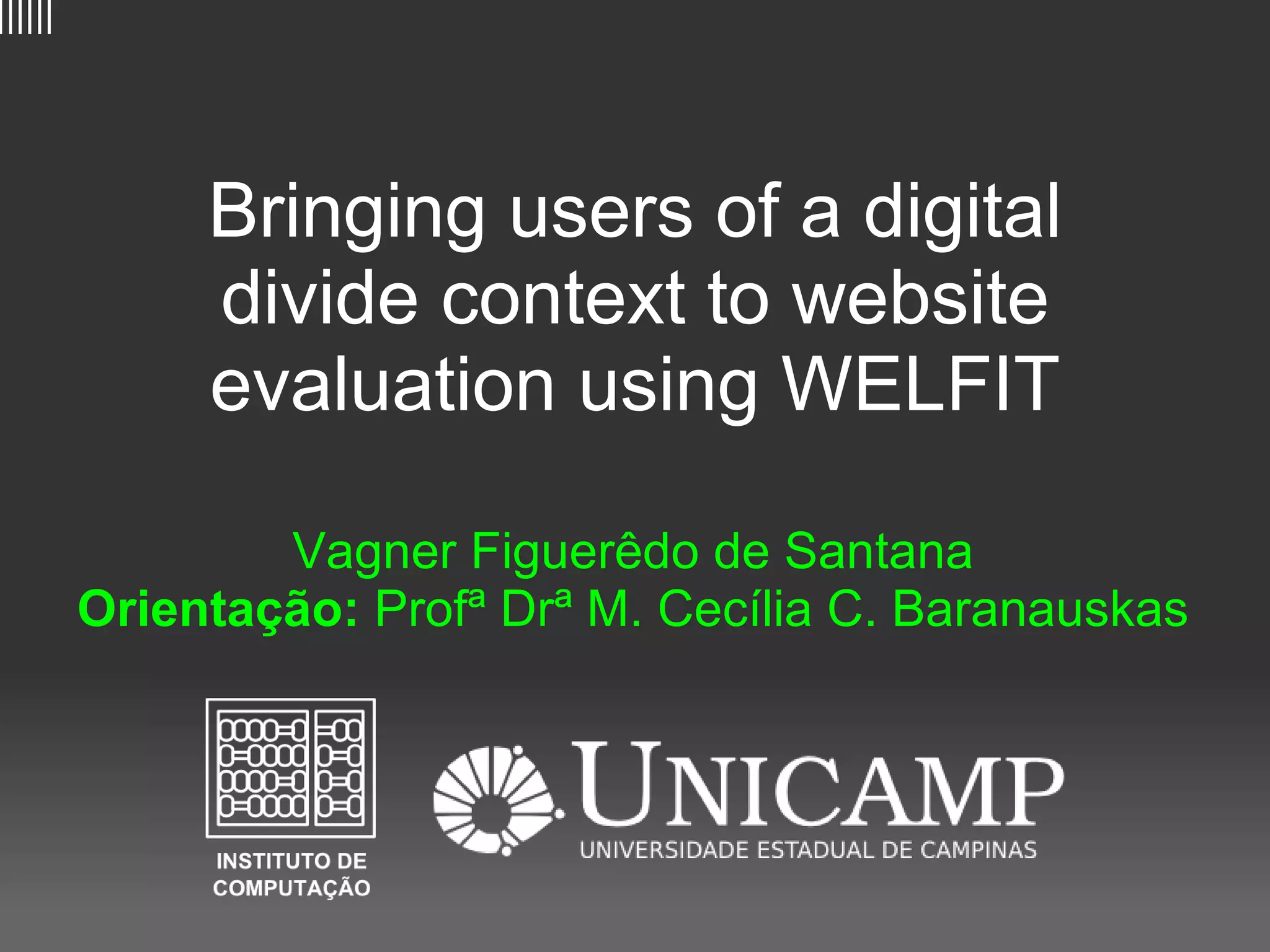 O documento discute a importância de avaliações de interfaces de usuário (IU) em contextos de diversidade, considerando que uma parte significativa da população brasileira enfrenta barreiras de acessibilidade. Apresenta resultados de uma avaliação utilizando a ferramenta Welfit, revelando que a compreensão e a aceitação do convite foram influenciadas pela acessibilidade e usabilidade do widget. As conclusões indicam que a confiança dos usuários na ferramenta e o redesign podem aumentar a participação em avaliações.