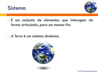 O documento discute a Terra como um sistema composto por subsistemas (geosfera, hidrosfera, atmosfera e biosfera) que interagem entre si através de trocas de matéria e energia. Também aborda as principais hipóteses sobre como teriam surgido os primeiros seres vivos na Terra.