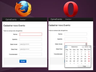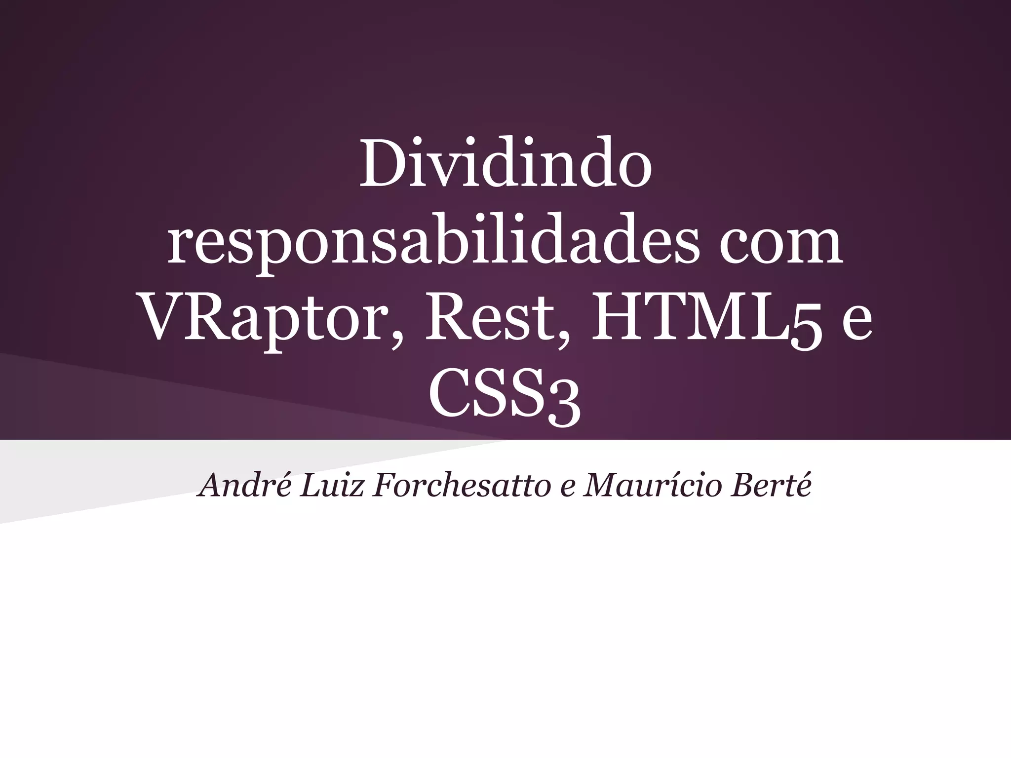 O documento discute o desenvolvimento web usando diferentes frameworks como VRaptor e Spring MVC combinados com REST, HTML5 e CSS3. Ele também introduz o Bootstrap como uma forma de criar interfaces responsivas com esses padrões sem esforço adicional.