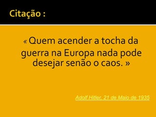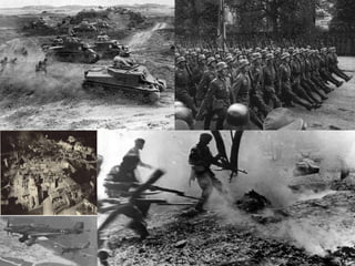 A II Guerra Mundial começou com a invasão da Polônia pela Alemanha em 1939. Os principais lados eram os Aliados (França, Reino Unido, União Soviética e Estados Unidos) contra as potências do Eixo (Alemanha, Itália e Japão). Após vários anos de batalha, a Alemanha se rendeu em 1945 depois que os Aliados derrotaram o Japão com bombas atômicas. A ONU foi formada no final da guerra para substituir a falida Liga das Nações e manter a paz global.