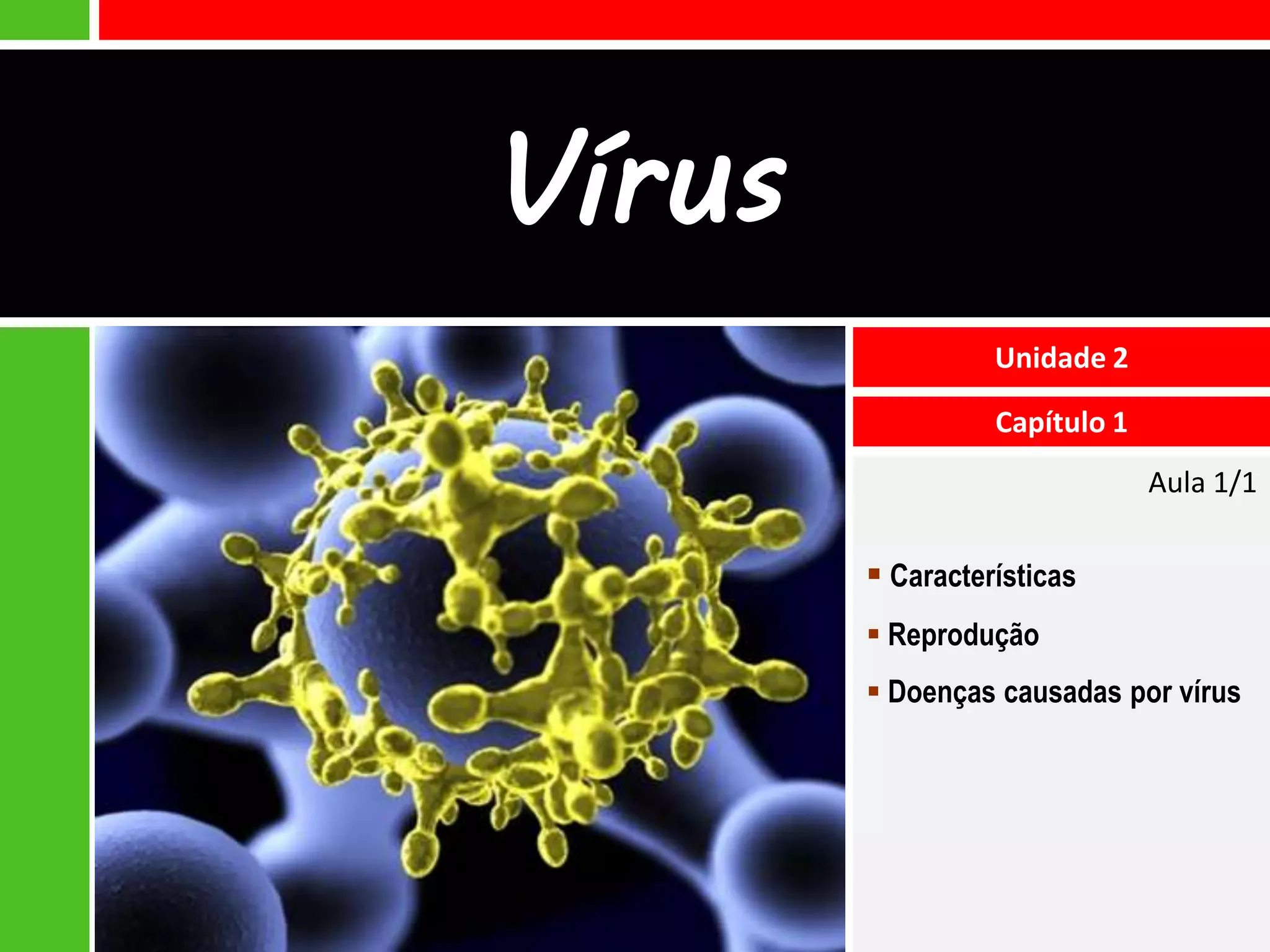Vírus são seres microscópicos acelulares que causam doenças como hepatite, catapora, rubéola e AIDS. Eles se reproduzem infectando células e liberando novas cópias, e se disseminam através de fluidos corporais e vetores. Vacinas ajudam a prevenir muitas doenças virais.