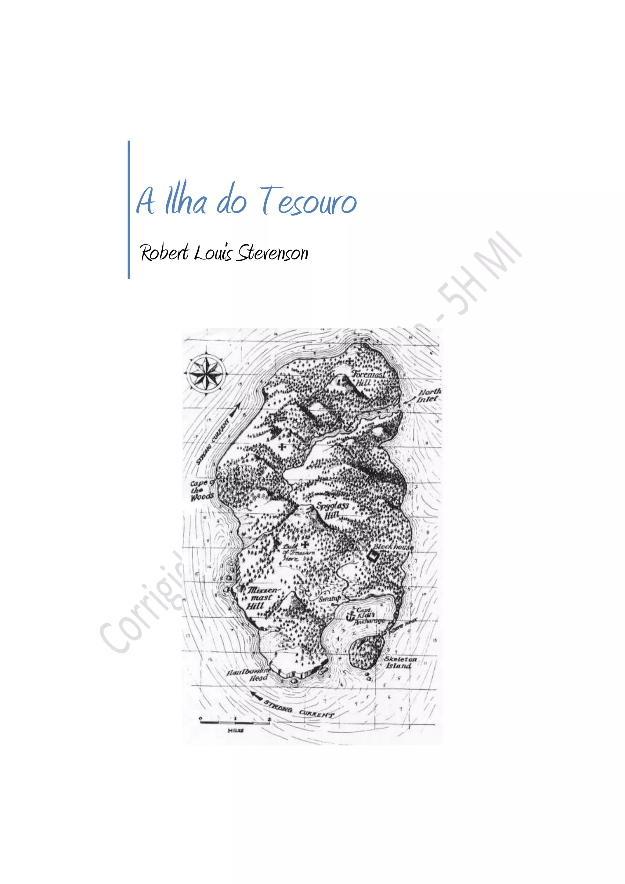 1) O documento conta a história de um jovem chamado Jim Hawkins que encontra um estranho Capitão na estalagem da sua família. 2) O Capitão fala sobre um tesouro escondido em uma ilha e morre, deixando pistas sobre sua localização. 3) Jim, o Dr. Livesey e o Sr. Trelawney organizam uma expedição para encontrar o tesouro na Ilha do Tesouro.