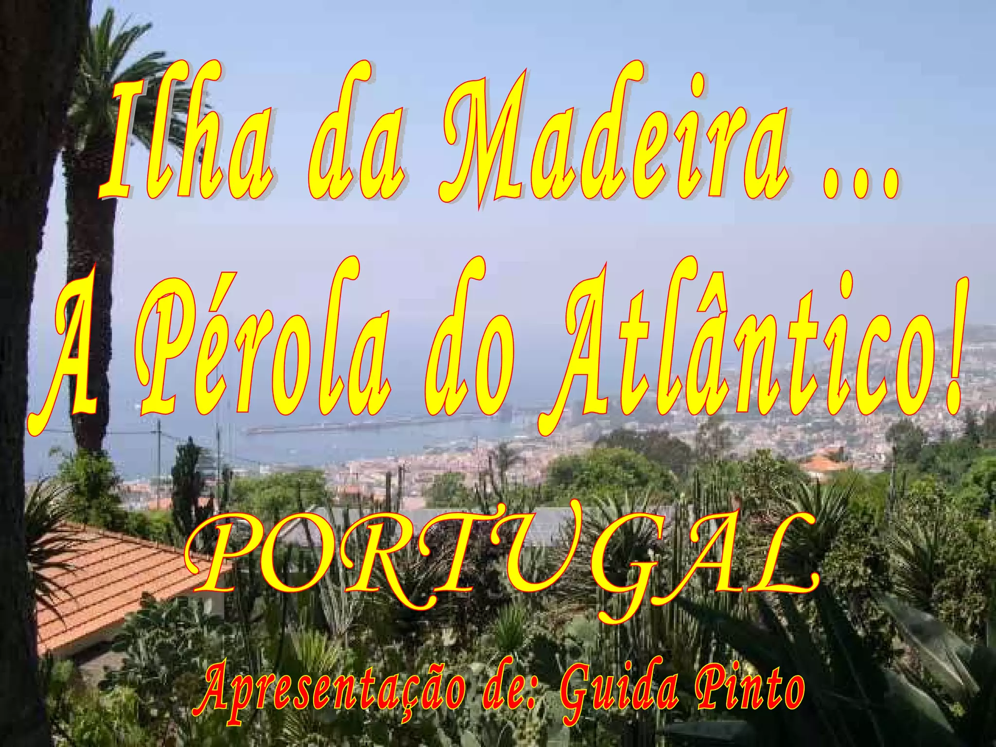 O documento apresenta a ilha da Madeira, destacando suas atrações principais como a capital Funchal, suas praias, montanhas, vilas e paisagens naturais espetaculares. Apresenta brevemente as características e atrações de locais como Câmara de Lobos, Cabo Girão, Ribeira Brava, Calheta, Porto Moniz, Encumeada, Curral das Freiras, Santana, Machico e Camacha. Tem como objetivo promover o turismo na ilha e incentivar a visita a este destino português.