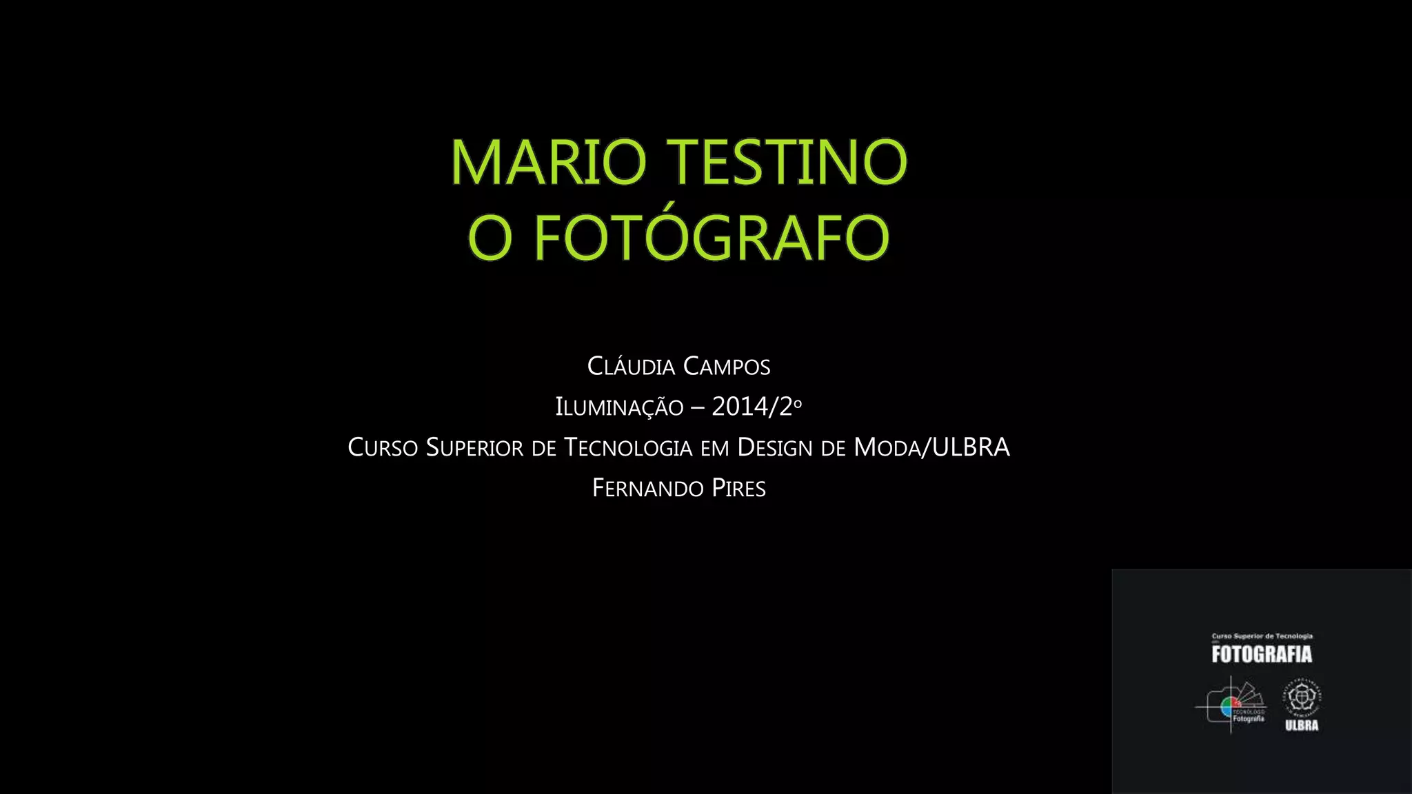 Mario Testino é um fotógrafo peruano naturalizado britânico com 30 anos de carreira. Ele estudou economia, direito e relações internacionais antes de decidir seguir a fotografia em Londres, onde fez seus primeiros trabalhos fotografando aspirantes a modelos. Testino se inseriu no mundo da moda através da cantora Madonna e é conhecido por seu estilo glamouroso e sensual. Ele dá ênfase à iluminação para realçar a beleza dos modelos e celebridades que fotografa. Recentemente