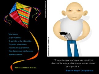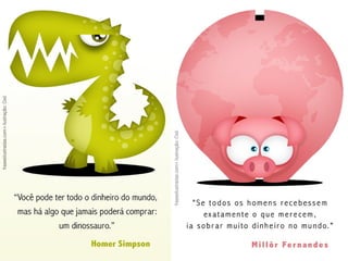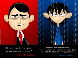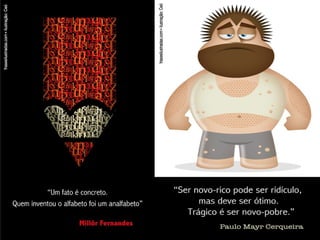 O documento sugere assistir em tela cheia para ler melhor uma ilustração de frases famosas engraçadas e fornece um link para slides do Power Point.