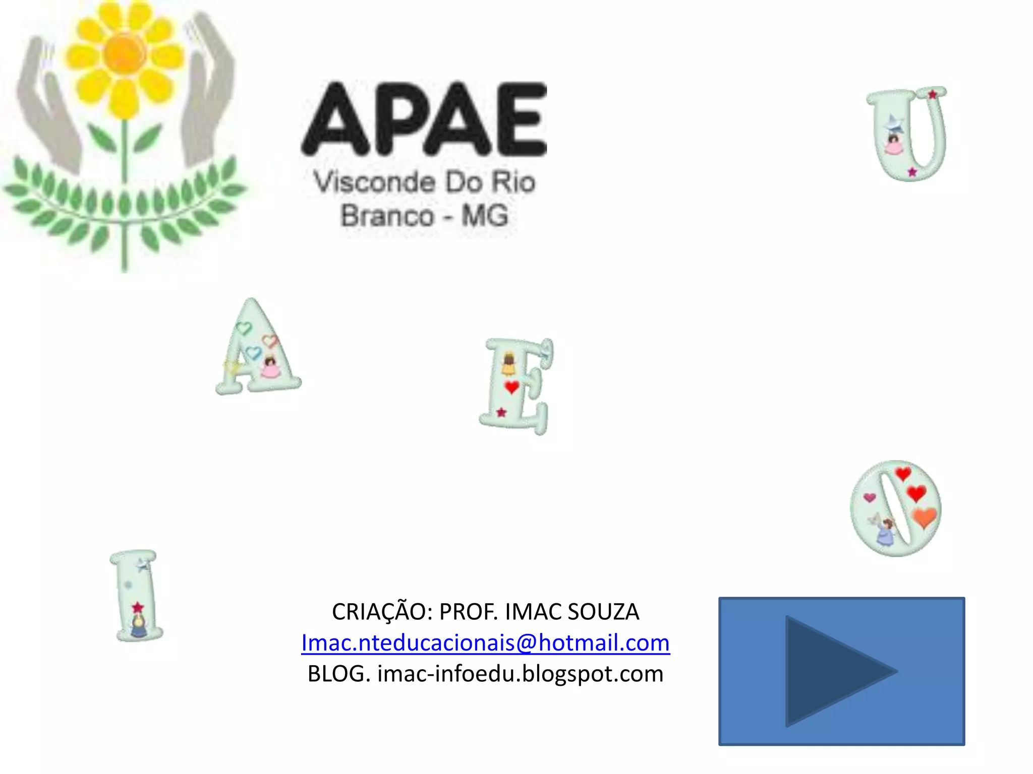 O documento fornece instruções para um jogo ou teste interativo onde o usuário clica em uma inicial e recebe feedback se acertou ou errou, com a opção de tentar novamente. É assinado por um professor e inclui links para seu blog.
