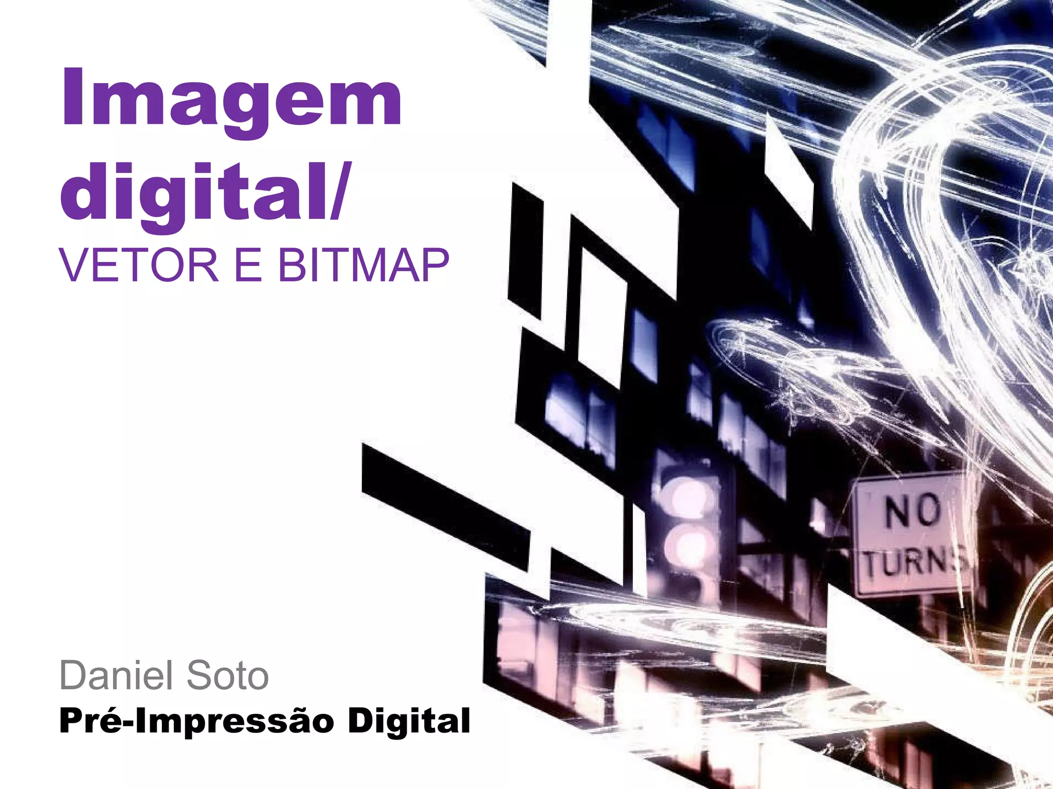 O documento discute as diferenças entre imagens digitais vetoriais e bitmap, destacando suas características, programas usados e formatos de arquivo. As imagens vetoriais são compostas por pontos e linhas, enquanto as imagens bitmap são formadas por pixels, cada uma com suas vantagens e desvantagens em termos de resolução e tamanho de arquivo. O texto também aborda a diferença entre arquivos abertos e fechados e fornece orientações para a preparação de arquivos para impressão.