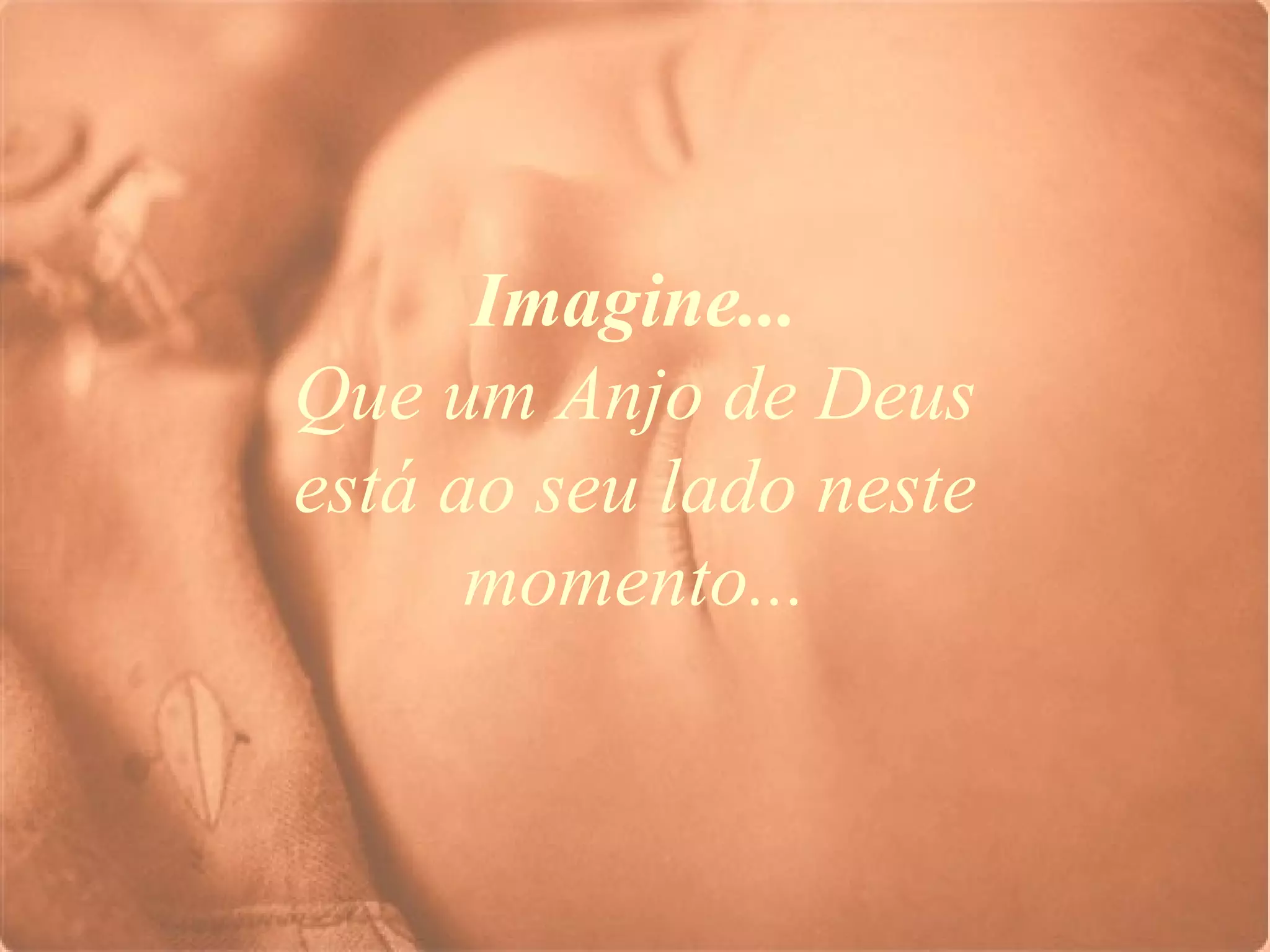 O documento sugere que o leitor imagine um anjo ao seu lado e entregue a Deus todos os problemas e preocupações, imaginando-se livre desses pesos. Pede também que imagine momentos felizes e os guarde no coração, agradecendo a Deus. Finaliza pedindo que compartilhe a mensagem com outras pessoas.