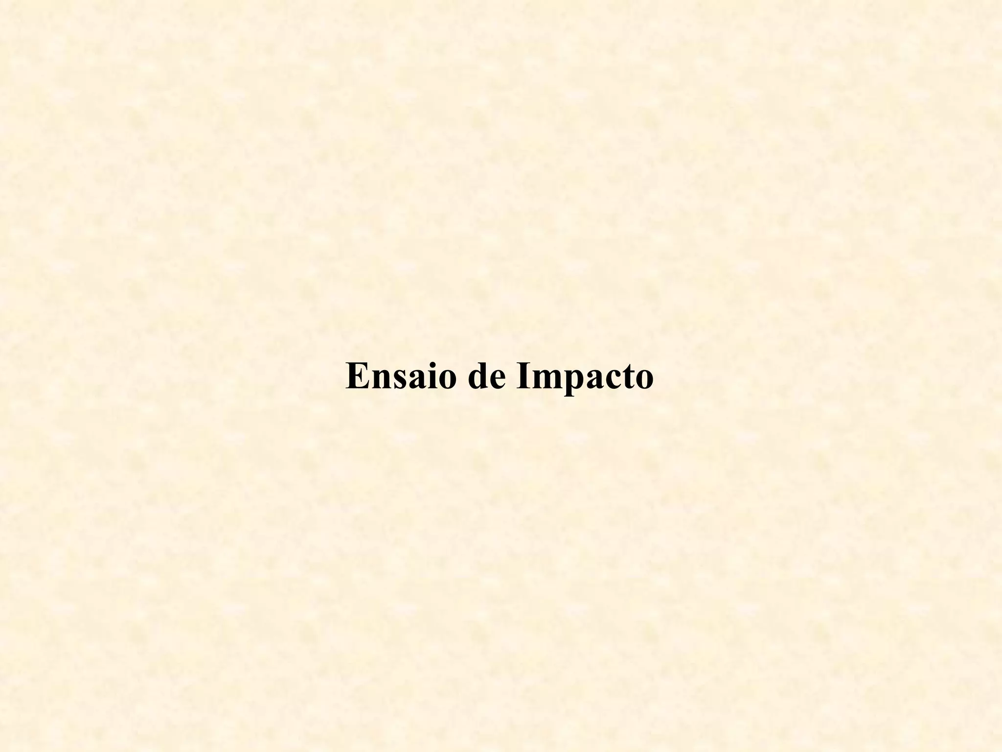 O documento discute o ensaio de impacto, um teste dinâmico usado para analisar fraturas frágeis em materiais. O ensaio mede a velocidade de impacto e a energia de impacto usando corpos de prova padronizados como os testes Charpy e Izod. Fatores como tensões triaxiais, baixas temperaturas e alta taxa de deformação contribuem para fraturas frágeis.