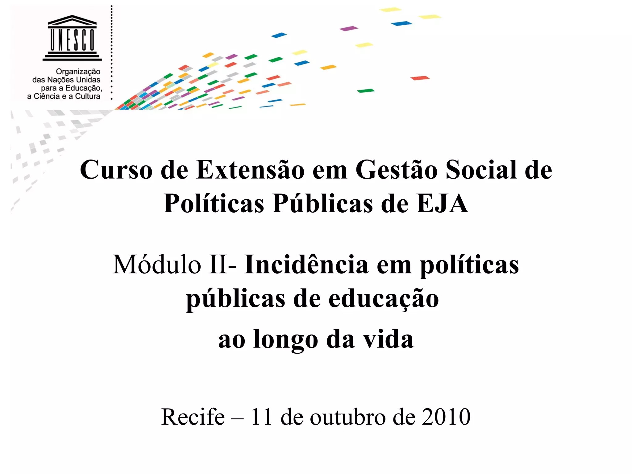 O documento discute a série de conferências internacionais CONFINTEA sobre educação ao longo da vida, com foco na CONFINTEA de 2009 em Belém, Brasil. Ele descreve o processo CONFINTEA, as seis conferências anteriores, o contexto e mobilização para a conferência de Belém, e as recomendações resultantes.