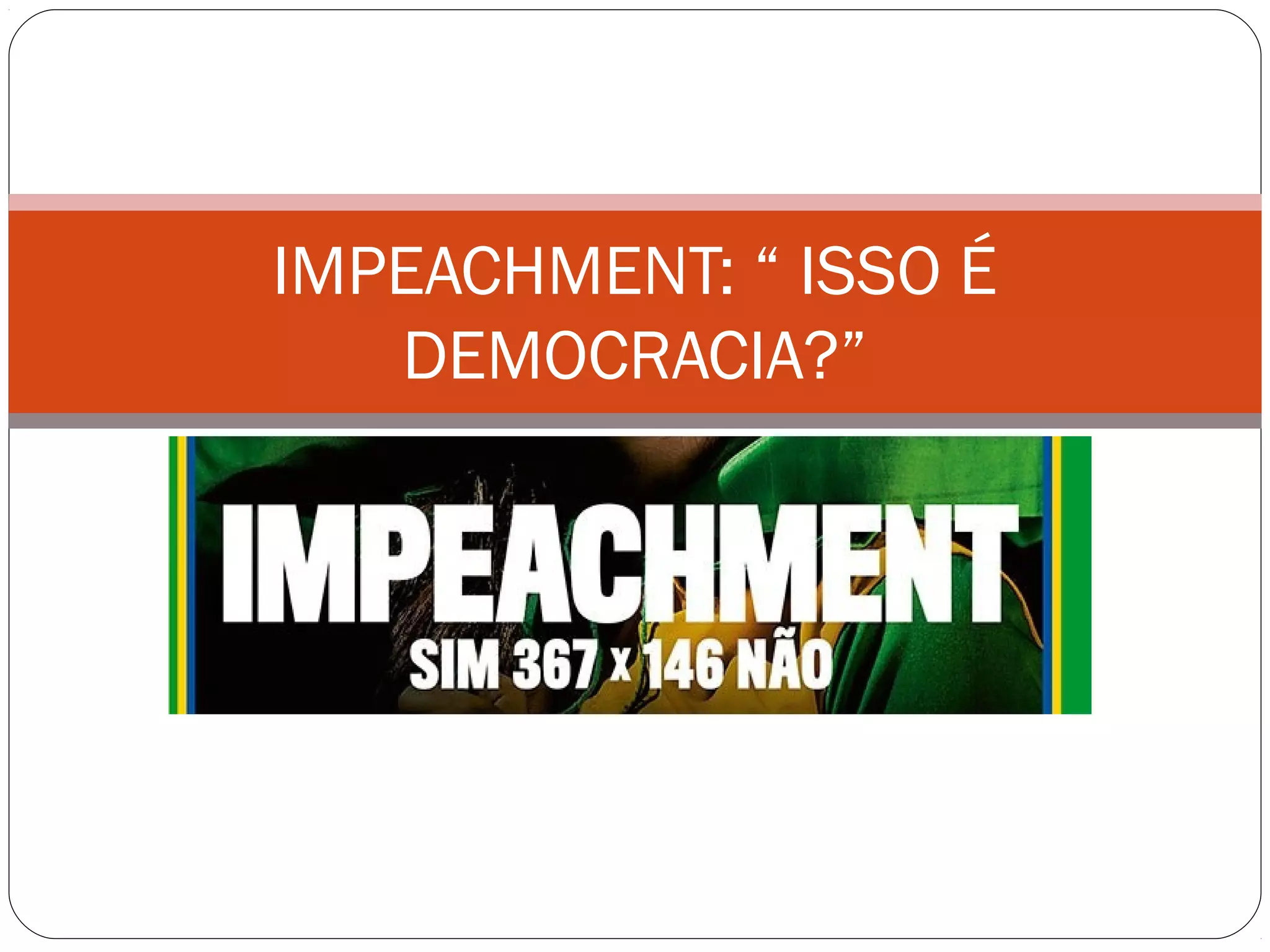 O documento analisa os discursos sobre impeachment vs democracia nas redes sociais. Discute hashtags como #respeiteasurnas e como a mídia influencia a sociedade. Também examina como as redes sociais permitem o pensamento crítico e diferentes ideias.