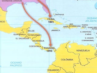 O documento descreve o imperialismo europeu no século XIX, quando potências como Inglaterra, França e Alemanha expandiram seus impérios coloniais na África e Ásia para obter matérias-primas e mercados para seus produtos industriais, justificando a ocupação de terras e povos estrangeiros com teorias raciais de superioridade européia. Isso gerou disputas entre as potências e lucros econômicos, mas também acirrou tensões internacionais.