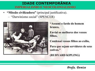 2) O neocolonialismo visava a obtenção de matérias-primas, mercados de consumo e bases estratégicas, sob a justificativa da "missão civilizadora".