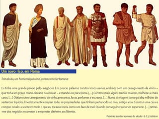 Os Romanos criaram um vasto império ao conquistar todas as terras ao redor do Mar Mediterrâneo, tornando-o um "lago romano". Eles romanizaram os povos conquistados através da língua, leis, religião, engenharia e outros elementos culturais, unificando assim o império.