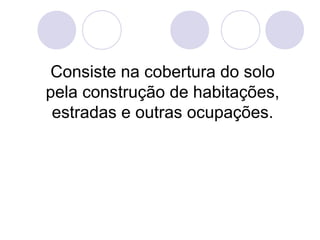 A impermeabilização do solo ocorre quando o solo perde a capacidade de absorção da água, principalmente nas cidades, devido à cimentação, asfaltamento, calçamento e edificações. Isso causa aumento das enxurradas e enchentes nos dias de chuva, pois a água da chuva não consegue penetrar ou se infiltrar no solo, prejudicando o abastecimento de lençóis de água subterrâneos e nascentes.