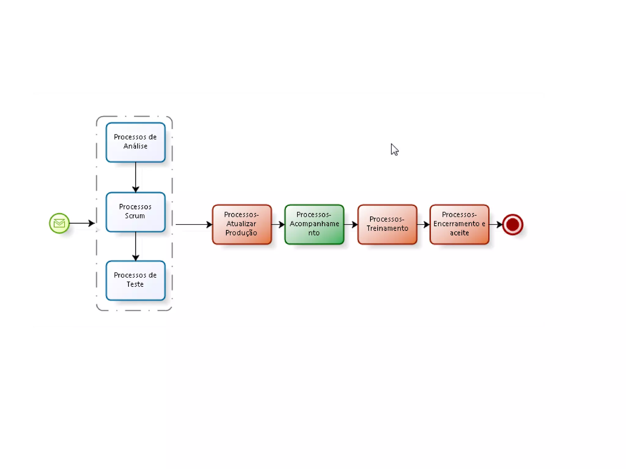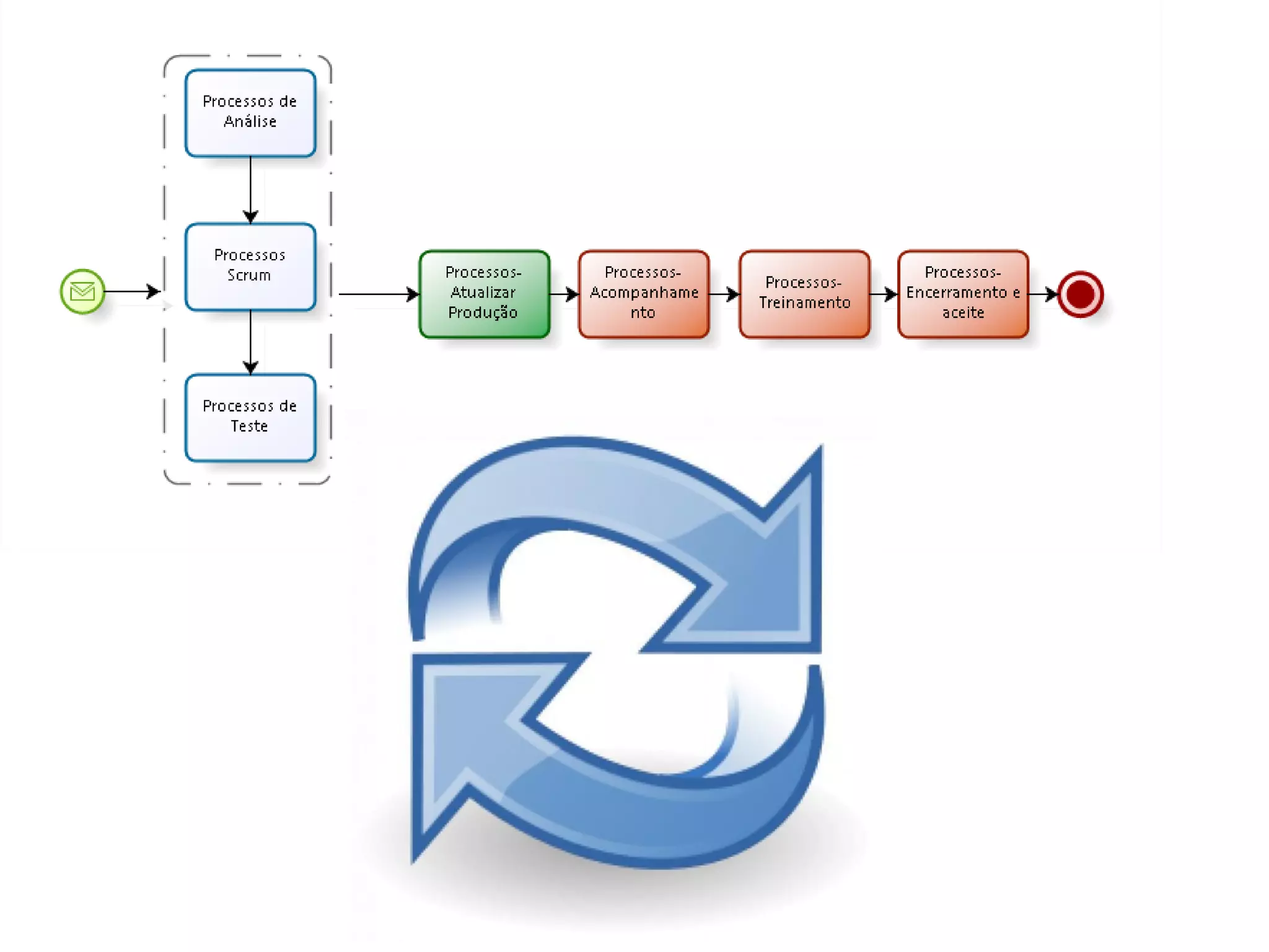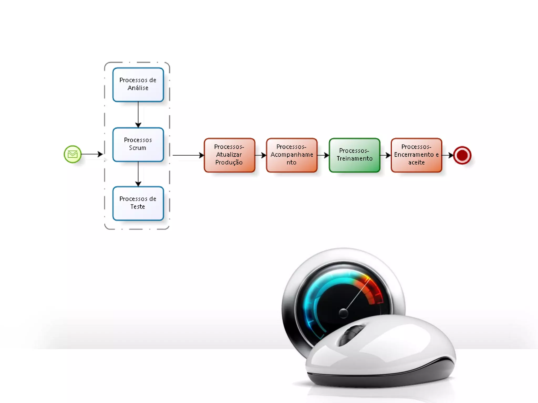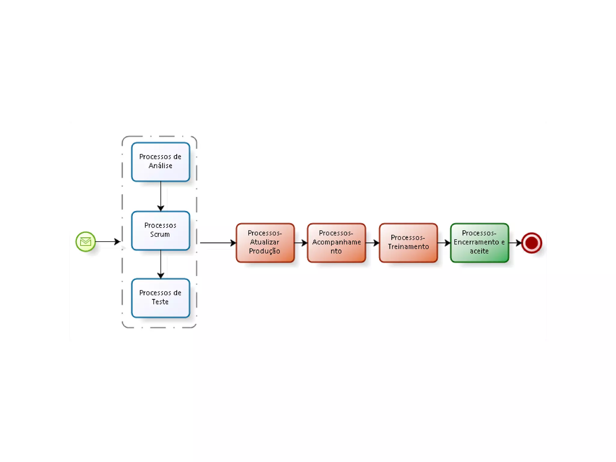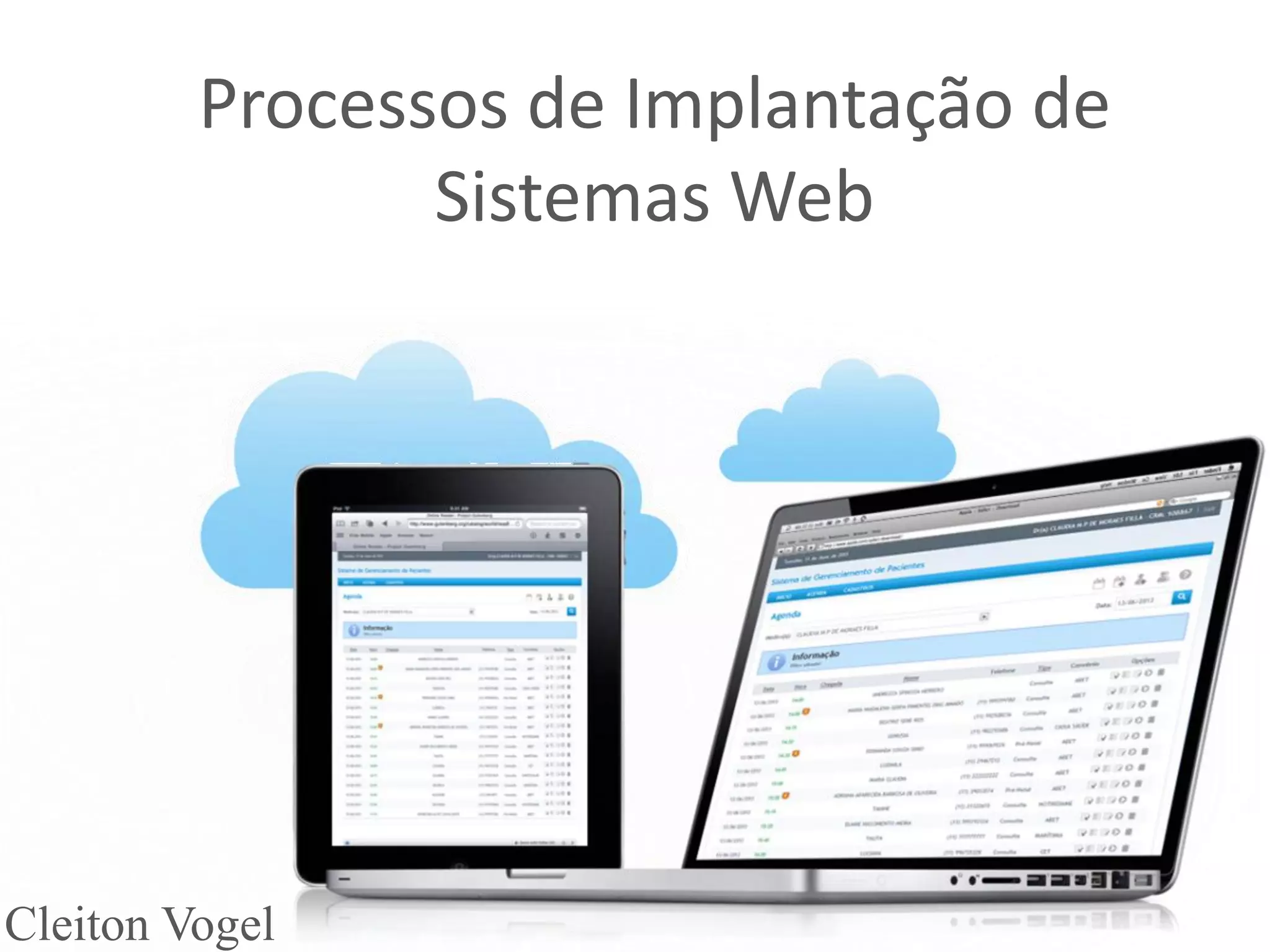 O documento descreve os processos de implantação de sistemas web, incluindo processos de análise, Scrum, teste, gerenciamento de projetos, controle de versão e atualização, treinamento e encerramento do projeto. Os processos de Scrum incluem papéis como Product Owner e Scrum Master, além de eventos como Daily Scrum e Sprint Review. O Redmine é usado como ferramenta de gerenciamento de projetos e o Git para controle de versão e merge de código.