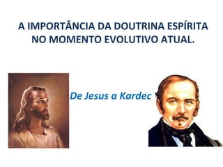 O documento descreve a evolução da Terra e da vida, desde a formação do planeta há bilhões de anos, passando pelas grandes civilizações antigas e o surgimento do Cristianismo, até os principais movimentos culturais e espirituais dos últimos séculos, culminando na importância da doutrina espírita para o momento atual.