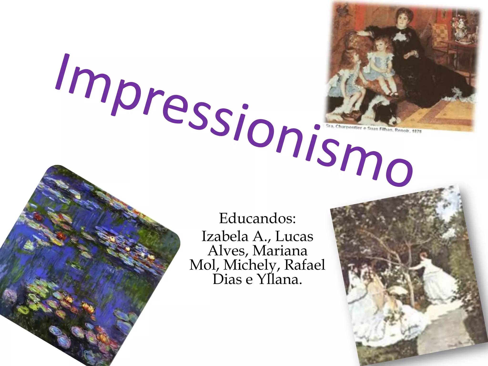 O impressionismo foi um movimento artístico do século XIX, surgido a partir da pintura 'Impressão, nascer do sol' de Claude Monet. Edgar Degas, um dos principais pintores impressionistas, combinou elementos de realismo e renascimento italiano em suas obras e teve uma vida marcada por estudos, viagens e desafios pessoais. Suas obras notáveis incluem 'A aula de dança', 'A pequena bailarina de catorze anos' e 'Retrato da família Bellelli'.