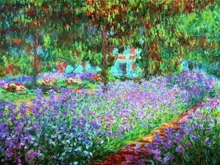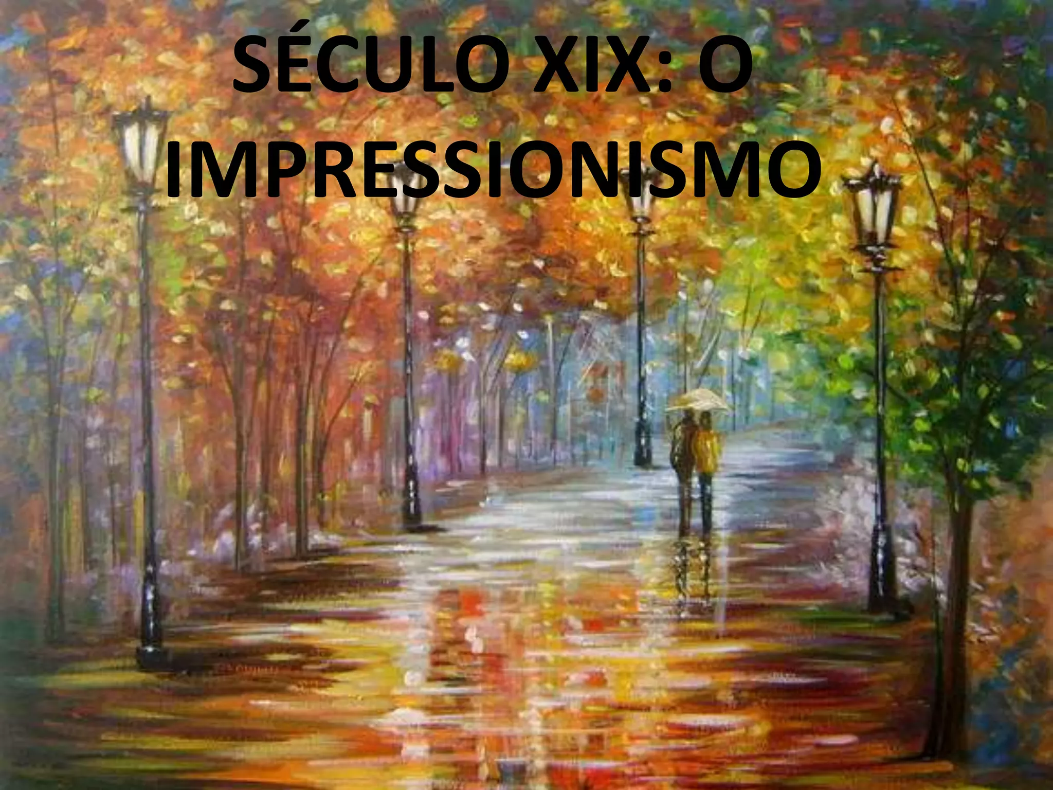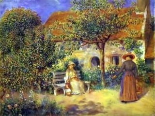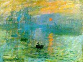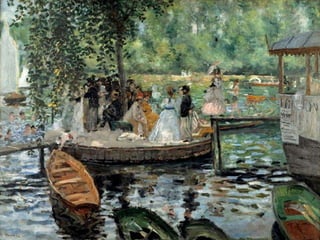 O documento descreve o século XIX na França, quando surgiu o movimento artístico Impressionismo. Os impressionistas buscavam captar os efeitos da luz natural sobre a paisagem através de pinceladas soltas e rápidas, sem preocupação com detalhes ou linhas. Alguns dos principais nomes foram Monet, Renoir e Degas.