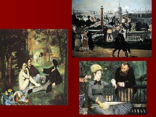 O movimento impressionista surgiu na França na década de 1860 e durou até 1886, revolucionando a arte ao representar sensações visuais através da cor e luz. Artistas como Monet, Renoir e Degas buscavam captar impressões iniciais em obras como "Impressão: Nascer do Sol" de Monet. Embora inicialmente criticado, o estilo determinou o curso da arte posterior.