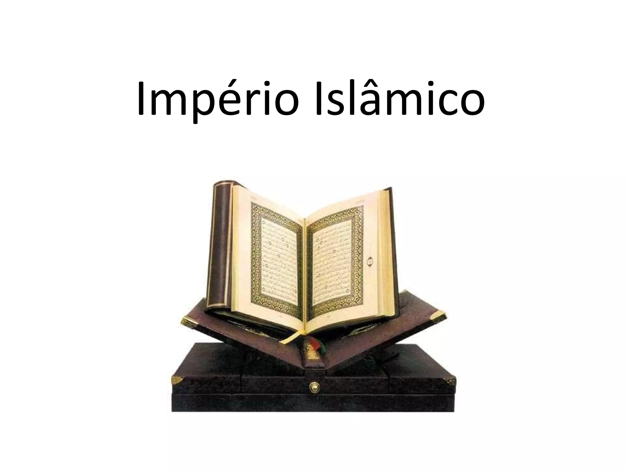 O documento descreve a origem e expansão do Império Islâmico. Começa com a vida dos árabes politeístas e a fundação do islamismo por Maomé. Após a Hégira em 622 d.C., os árabes se uniram sob a liderança dos Califas para expandir o islamismo através do Jihad. A dinastia Omíada expandiu o império para o oeste até a Espanha, mas conflitos levaram ao seu desmembramento em vários Califados independentes.