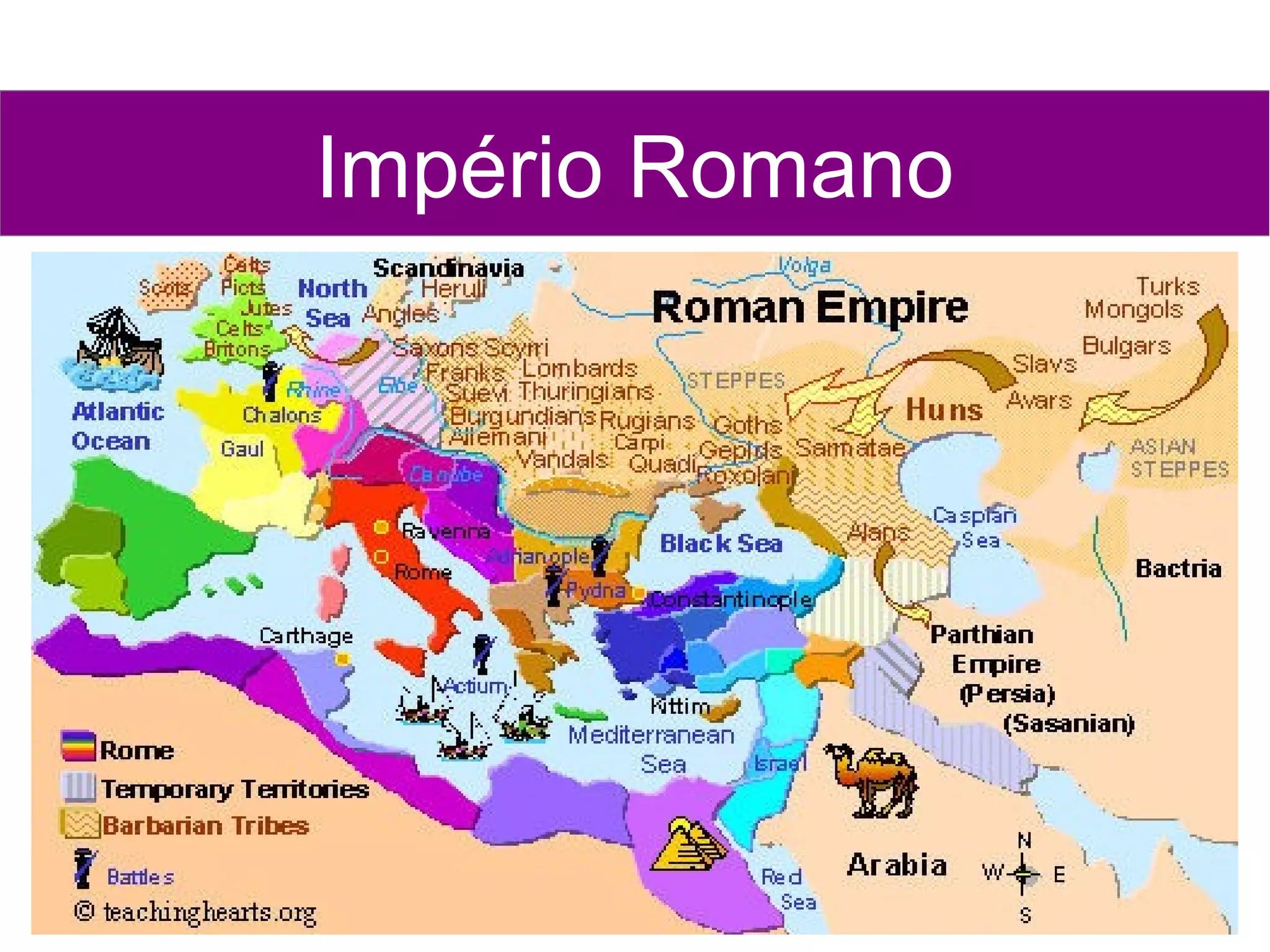 O documento descreve a transição da República Romana para o Império Romano, onde os militares ganharam poder acima do Senado com as vitórias em guerras. O primeiro Imperador foi Otávio Augusto. O documento também resume as principais dinastias do Alto Império Romano e os problemas políticos, econômicos e de defesa das fronteiras que levaram ao colapso do Baixo Império Romano.