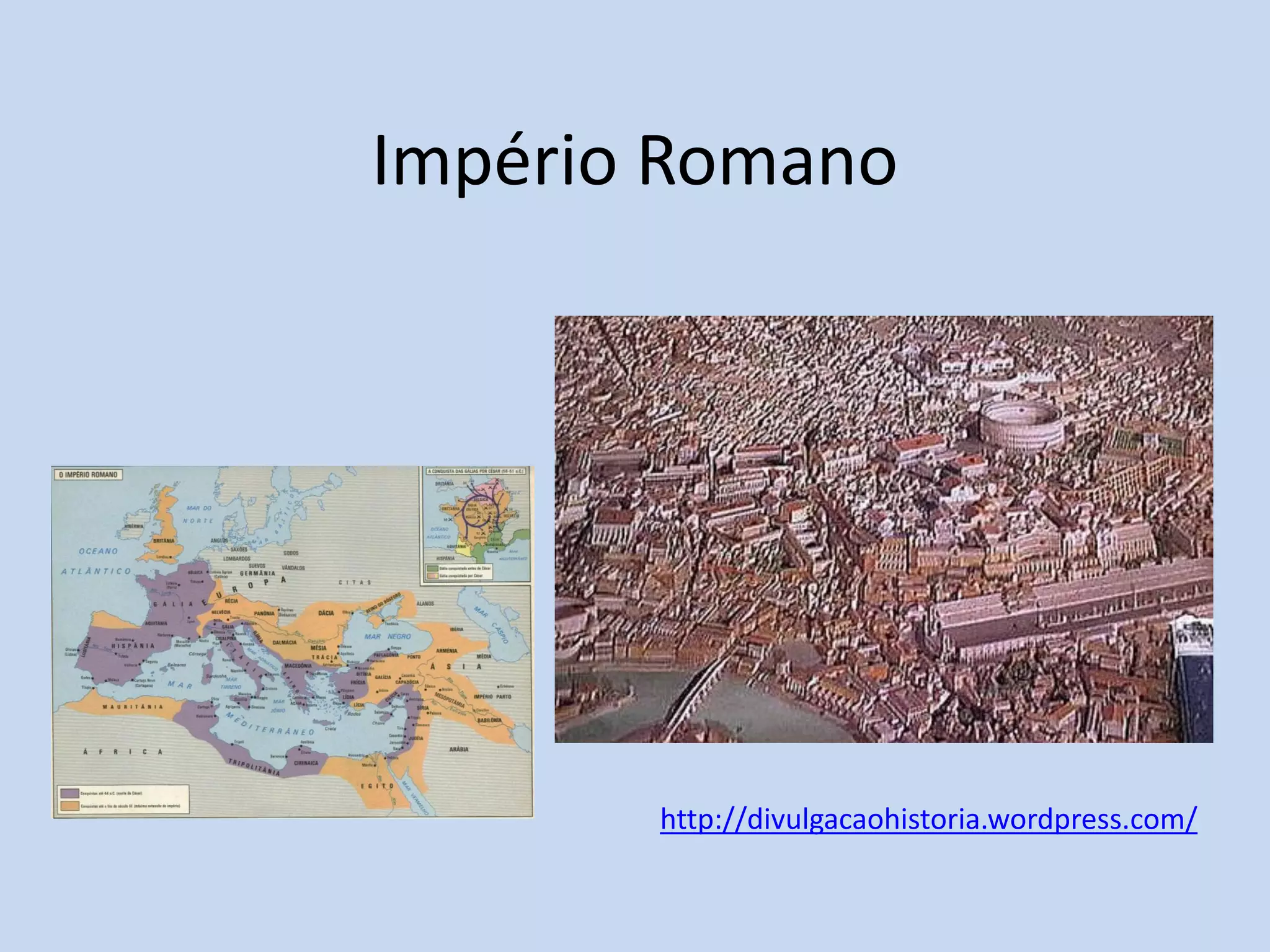 O Império Romano começou como uma cidade-estado em 753 a.C. e cresceu para dominar um vasto território ao longo do Mediterrâneo. A República Romana governou por séculos antes de dar lugar ao Império Romano sob o primeiro imperador Augusto. O império alcançou sua maior extensão nos séculos I e II d.C., difundindo a língua latina e a cultura romana enquanto mantinha a paz e a prosperidade.