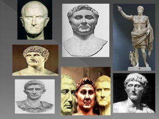 O documento descreve a história de Roma, dividida em três períodos: Monárquico, Republicano e Imperial. O período Monárquico foi marcado pelo domínio etrusco e pela organização inicial da sociedade romana. Na República, o poder foi dividido entre cônsules e senado. O período Imperial viu o auge do Império Romano e sua posterior divisão e queda, influenciada por invasões e crises internas.
