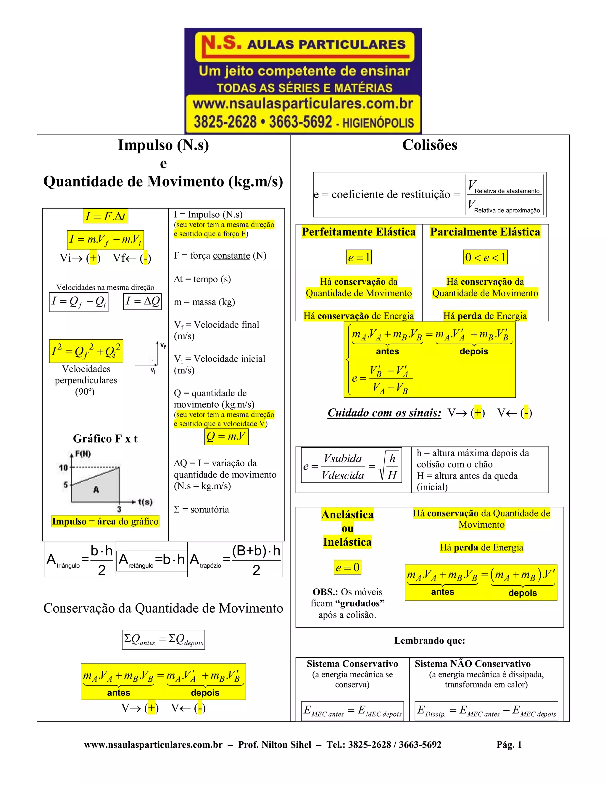 1) Impulso é igual à variação da quantidade de movimento e é representado pela área sob a curva "força versus tempo";
