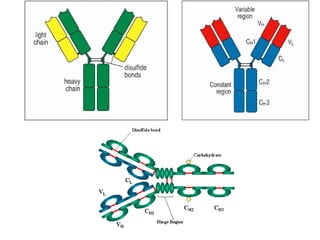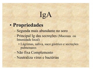 O documento descreve os principais conceitos de imunologia, incluindo: (1) a descoberta da vacina contra varíola por Jenner em 1798; (2) a demonstração por Koch que doenças infecciosas são causadas por microrganismos; (3) a descoberta dos anticorpos por von Behring e Shibasaburo. O texto também resume os mecanismos da imunidade inata e adquirida.