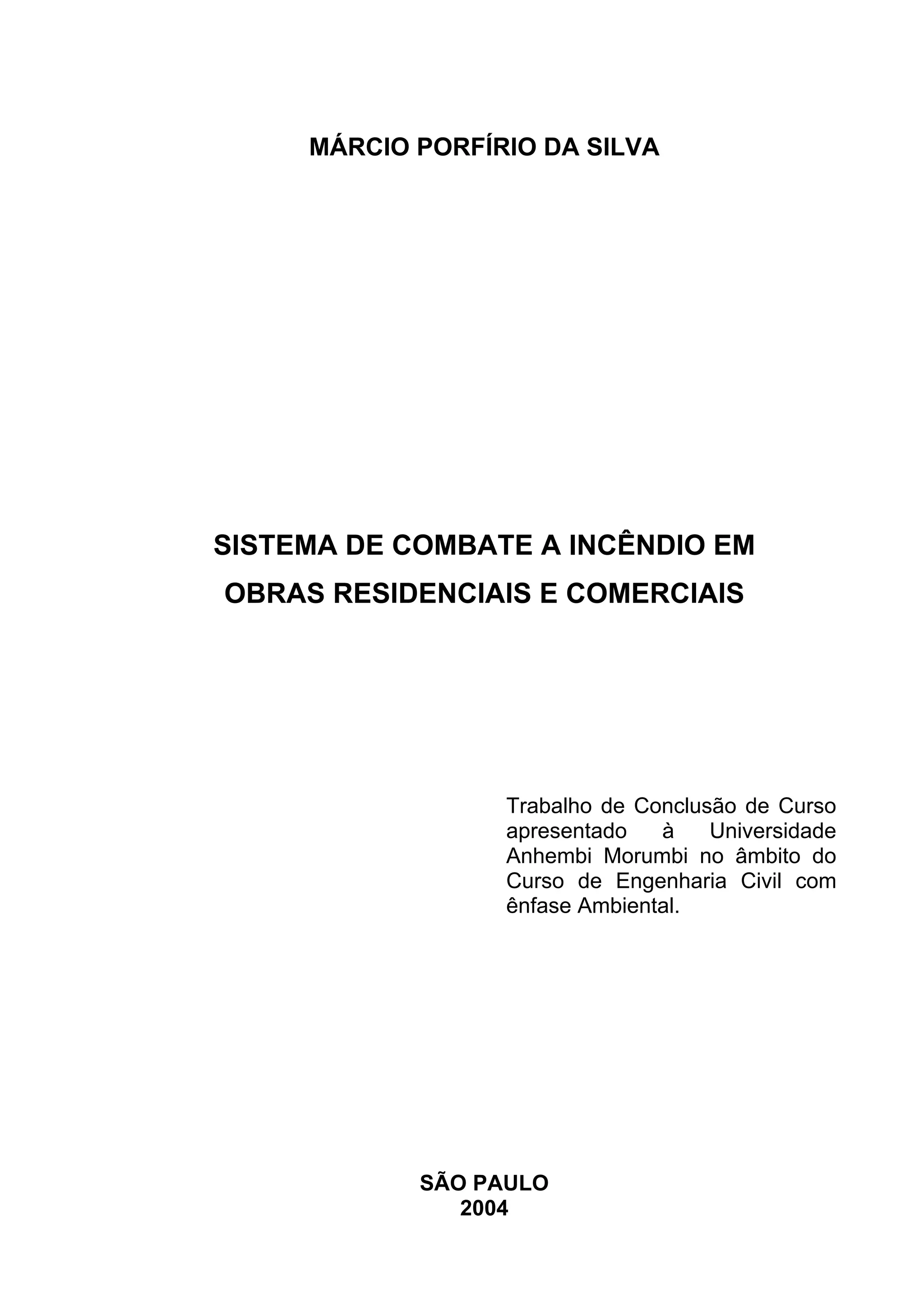 Este documento apresenta um trabalho de conclusão de curso sobre sistemas de combate a incêndio em obras residenciais e comerciais. O trabalho aborda os requisitos para projetos de sistemas de segurança contra incêndio e as normas aplicáveis, apresenta um estudo de caso ilustrando a aplicação destes requisitos em um edifício residencial, e traz conclusões sobre o tema.