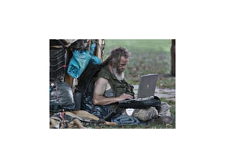 O documento discute a inclusão digital no Brasil, focando na terceira idade, deficientes e exclusão digital. Ele fornece estatísticas sobre uso de computadores e internet por idosos e descreve iniciativas de inclusão digital como projetos que ensinam idosos a usar tecnologia.