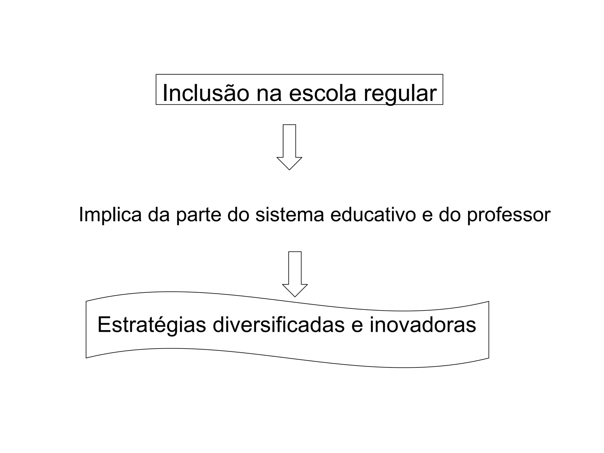 A inclusão de alunos com necessidades educativas especiais na escola regular requer estratégias diversificadas e inovadoras do professor e adaptações do currículo e recursos de acordo com cada perturbação, para que esses alunos possam ter sucesso no processo de ensino.