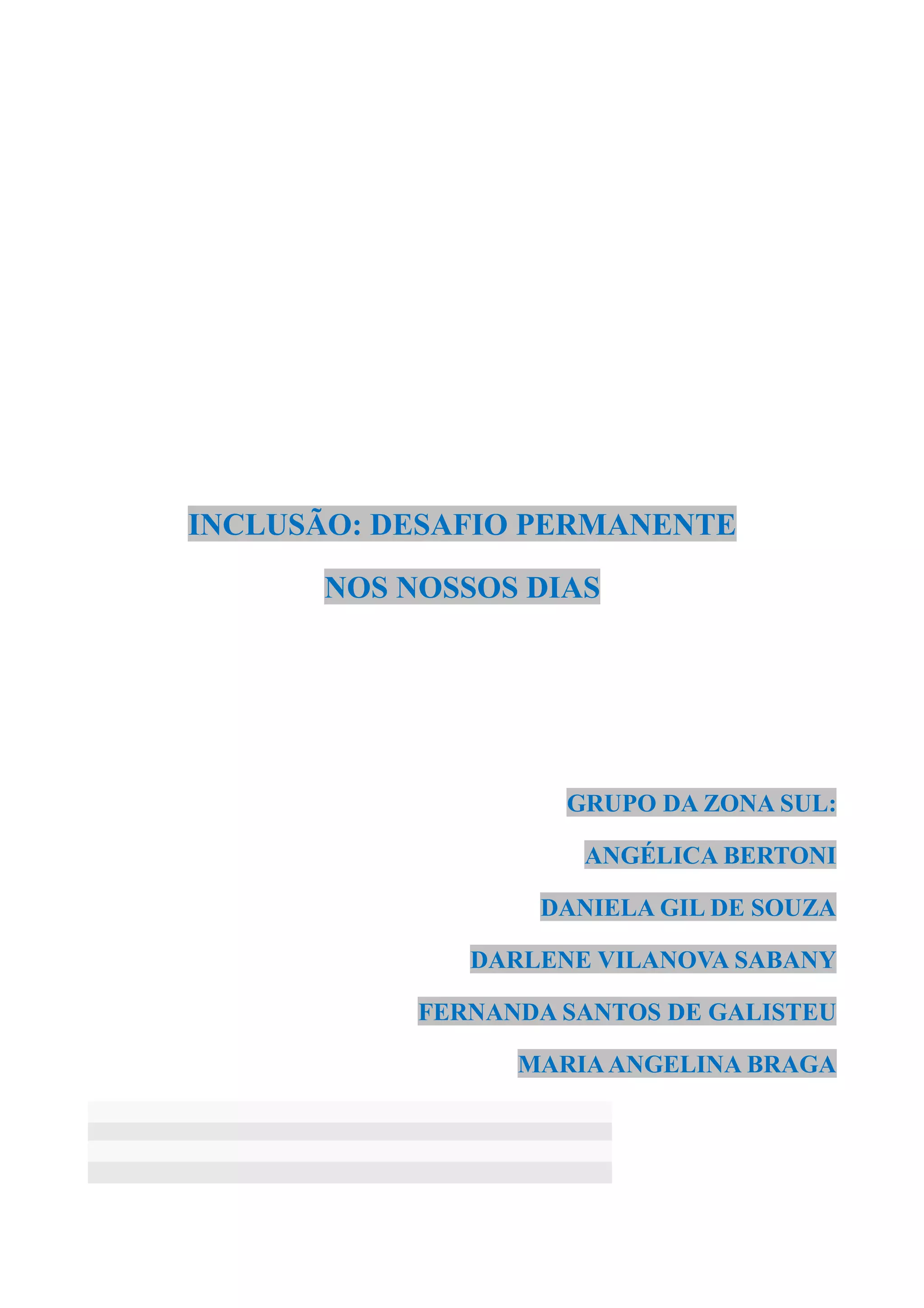 [1] A inclusão é um processo complexo que requer adaptações nas escolas e na formação dos professores para atender melhor as necessidades educacionais especiais de todos os alunos. [2] As escolas precisam trabalhar em cooperação com planejamentos baseados em projetos interdisciplinares que abordem temas de interesse da comunidade. [3] A concretização de um ensino inclusivo capaz de atender a todos os alunos de forma satisfatória é um dos maiores desafios atuais dos sistemas educativos.