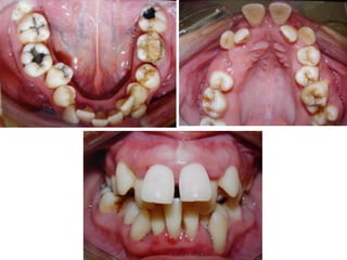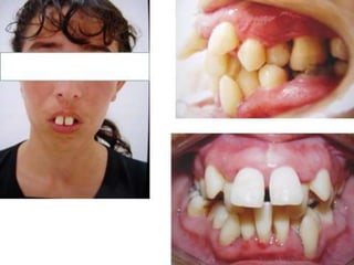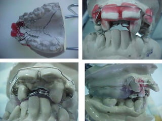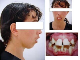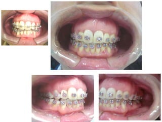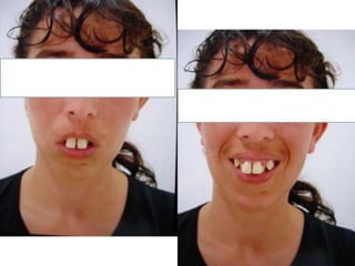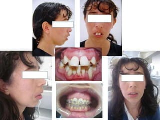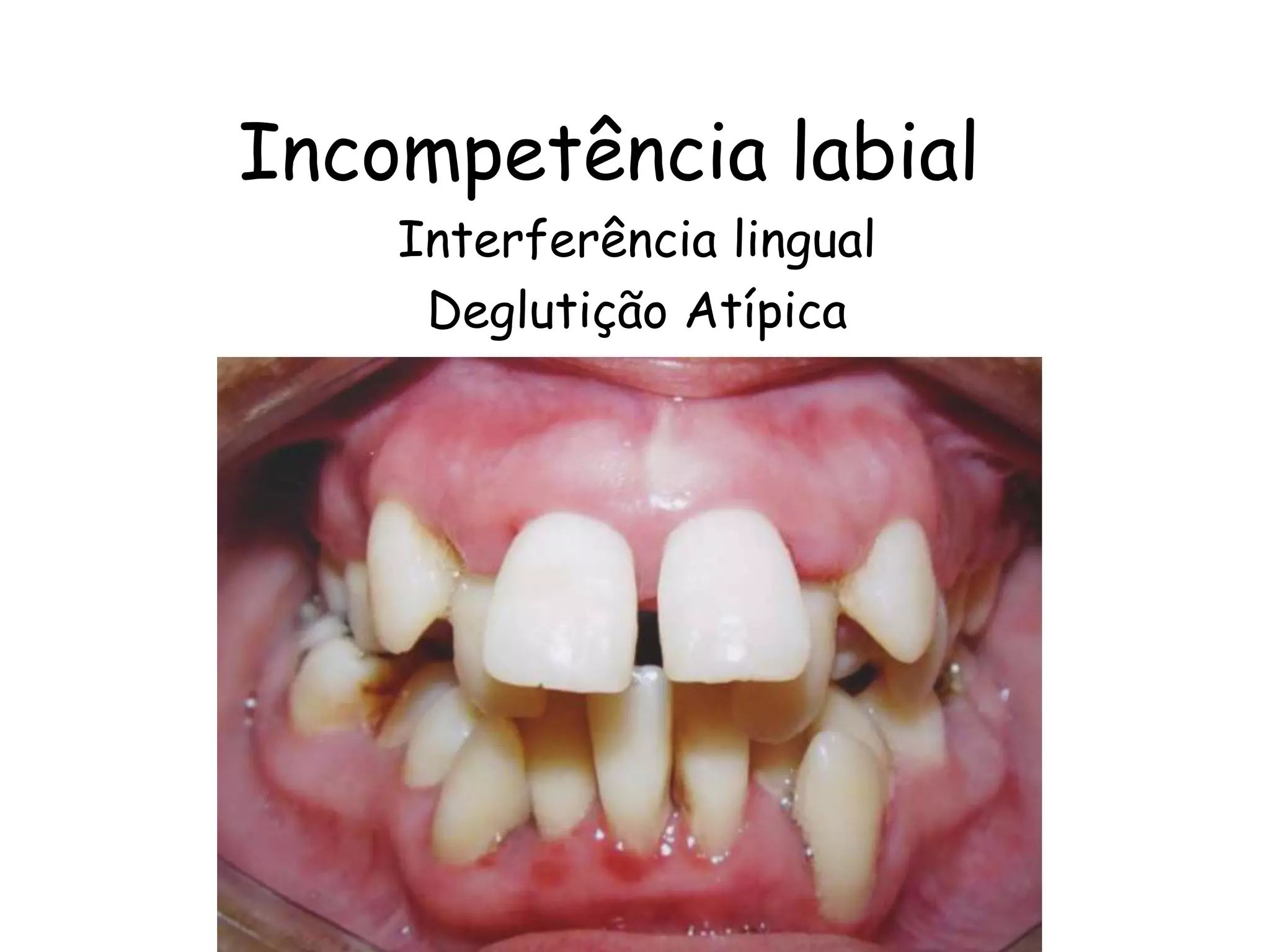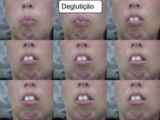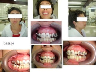 O documento descreve o tratamento de um paciente com incompetência labial, interferência lingual e deglutição atípica ao longo de vários anos, incluindo o uso de placas, remodelação transversal e guias de oclusão para corrigir problemas de alinhamento e contato dental. O paciente continuou com hábitos bucais indesejados apesar dos tratamentos realizados.