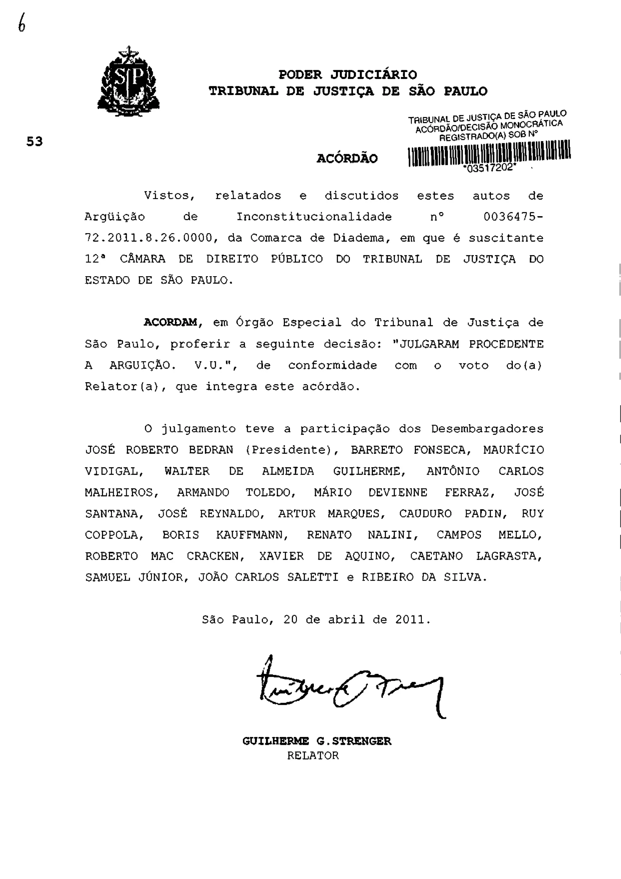 A Lei Municipal n° 2.096/01 de Diadema, que instituiu sistema de compensação de horas excedentes para servidores públicos municipais, foi considerada inconstitucional porque não houve acordo prévio entre o município e o sindicato dos servidores, contrariando a Constituição Federal que exige acordo ou convenção coletiva para compensação de horários. A arguição de inconstitucionalidade proposta foi julgada procedente.