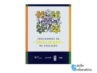 O documento descreve o processo de elaboração de indicadores de qualidade para a educação infantil no Brasil, incluindo a constituição de um grupo técnico, testes piloto e seminários regionais. Ele apresenta as dimensões dos indicadores, como planejamento institucional, espaços físicos e formação de professores, e fornece orientações sobre como utilizar os materiais produzidos.