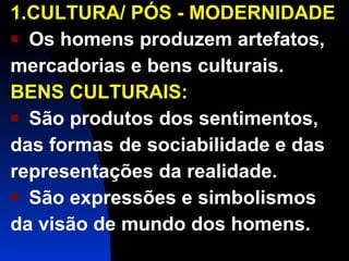 1) Os bens culturais são produtos das representações sociais e da visão de mundo dos homens.