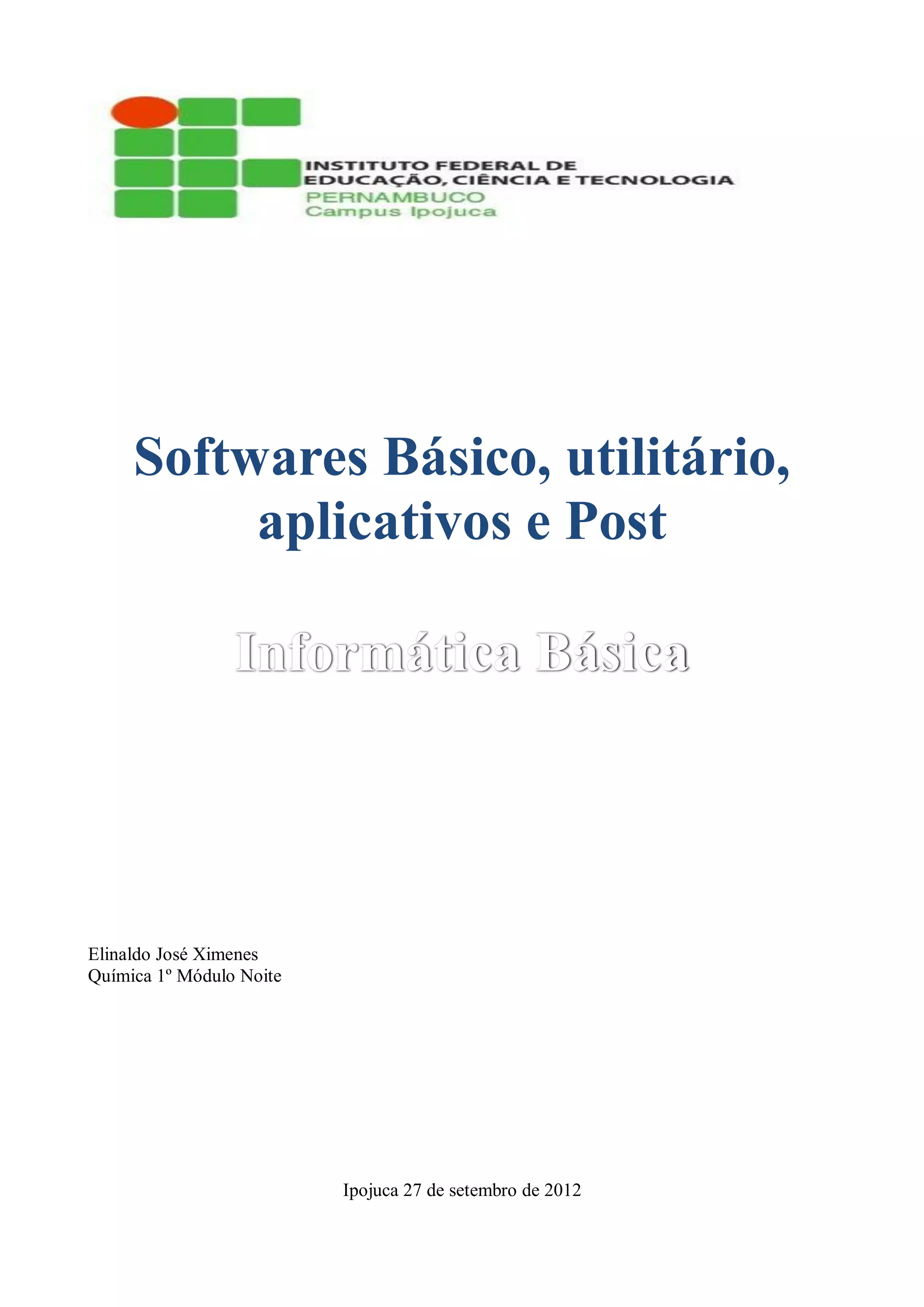 O documento discute diferentes tipos de softwares, incluindo softwares básicos que permitem a interação entre usuário e hardware, softwares aplicativos que realizam tarefas específicas, e softwares utilitários que realizam pequenas tarefas como compactação de dados. Ele também explica o que é o POST, que verifica se o sistema está funcionando corretamente antes do início.