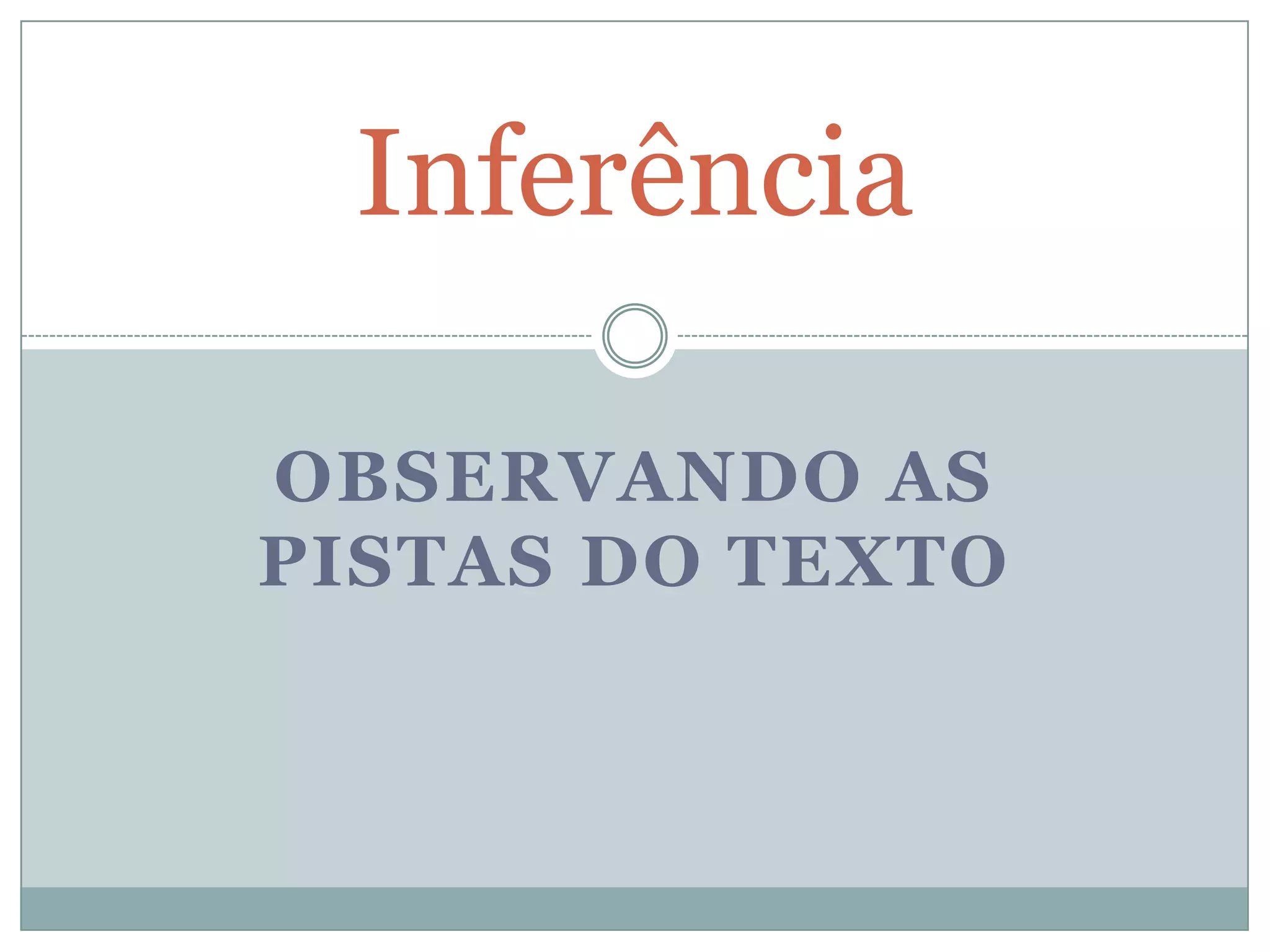 O documento discute o conceito de inferência na leitura e fornece um exemplo de uma charge onde o leitor precisa fazer inferências. A charge critica como a tecnologia está afastando as pessoas, inclusive nas relações familiares, já que os pais chamam o filho para jantar por e-mail ao invés de conversar pessoalmente.