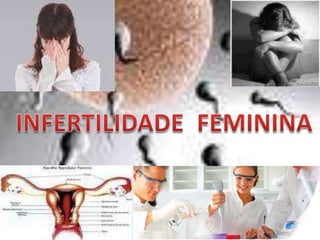 O documento descreve as principais causas de infertilidade feminina, incluindo síndrome dos ovários policísticos, endometriose, obstrução tubar, muco cervical incompetente, anomalias do cariótipo, patologias uterinas, tumores malignos, gravidez ectópica, interrupção voluntária da gravidez, abortamentos de repetição, auto-anticorpos e causas desconhecidas. A infertilidade pode ser devida a fatores funcionais ou orgânicos que impedem a engravidar.