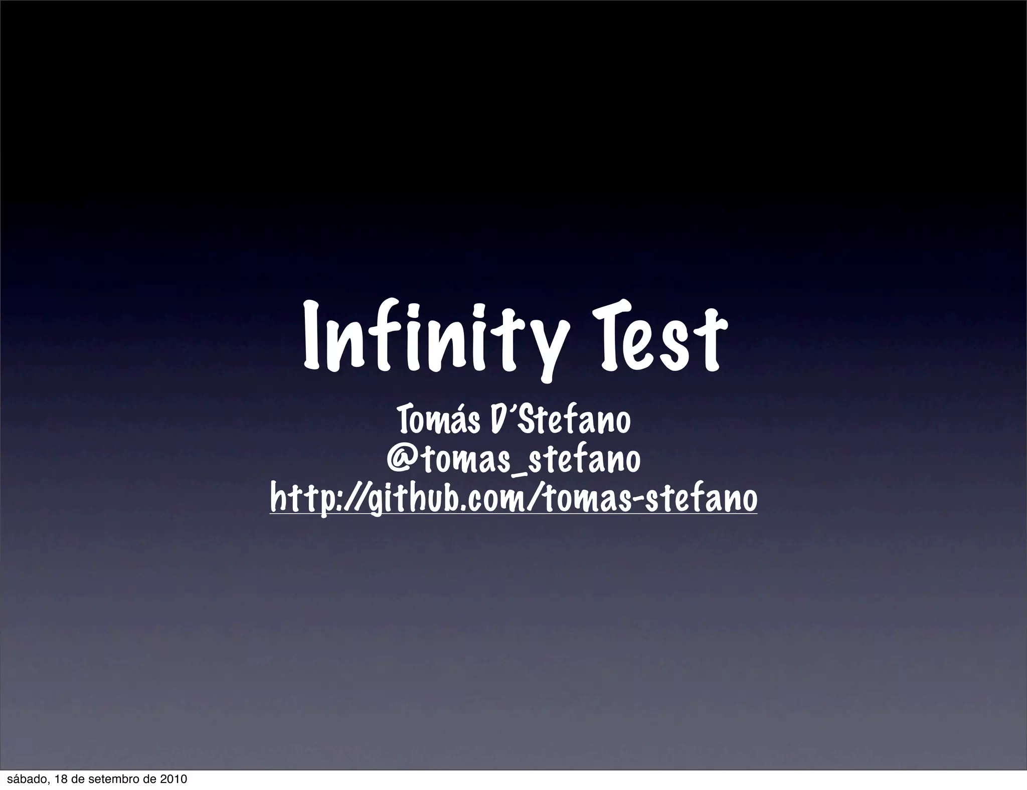 The document introduces Infinity Test, a tool for testing code against multiple Ruby versions and frameworks. It discusses using RVM to test code in different Ruby environments, various test frameworks supported by Infinity Test like RSpec, and configuring Infinity Test through a YAML file to customize test runs. The goal of Infinity Test is to make development more fun through testing code in different conditions.